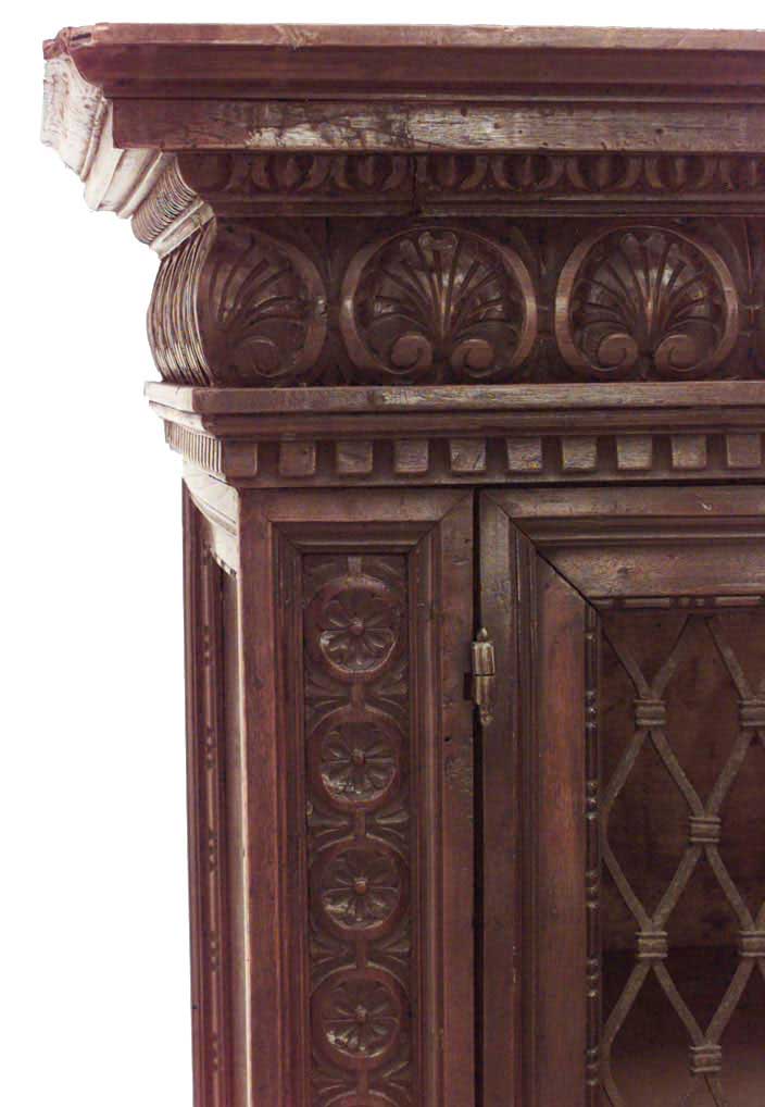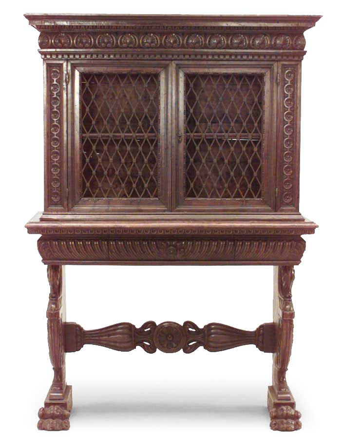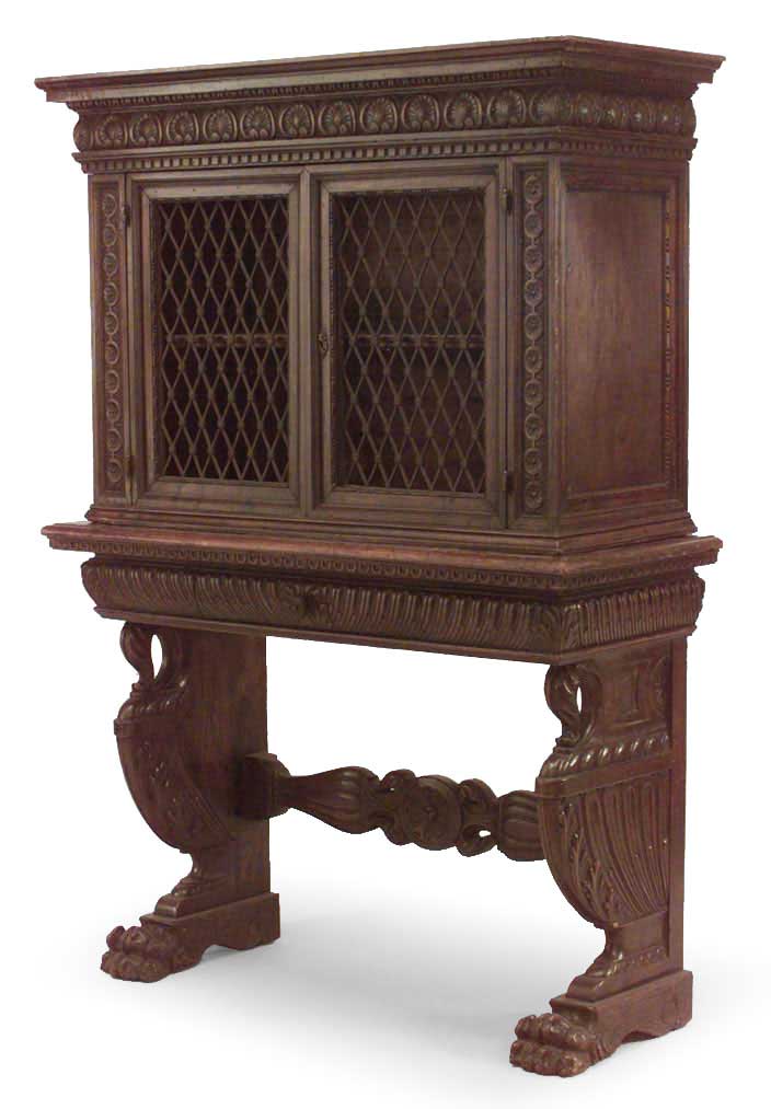 Italian Renaissance style (17th Century and Later) walnut cabinet on stand with 2 grill doors above a frieze drawer & trestle supports.