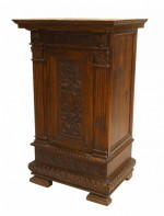 Italian Renaissance style (19th Century) small walnut single door commode with pilaster sides.