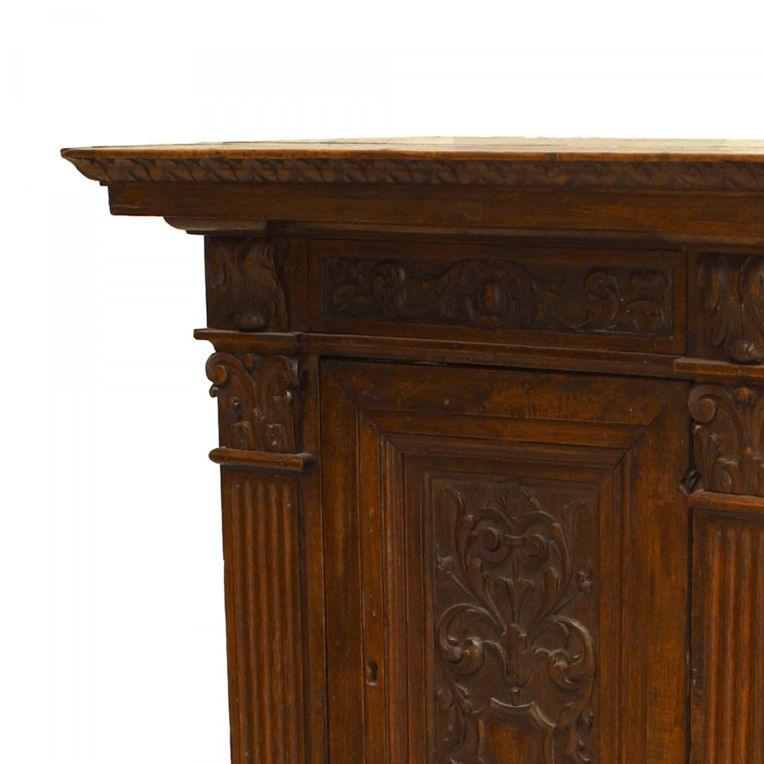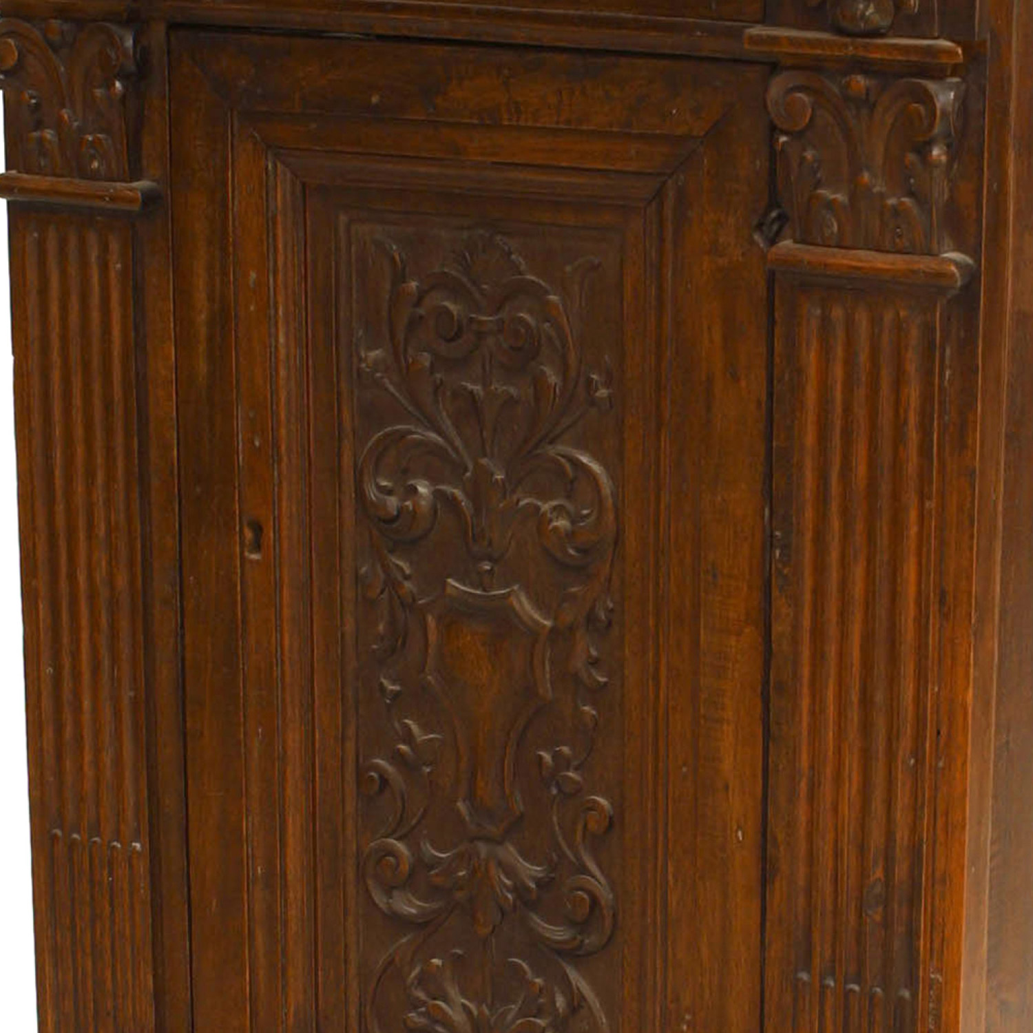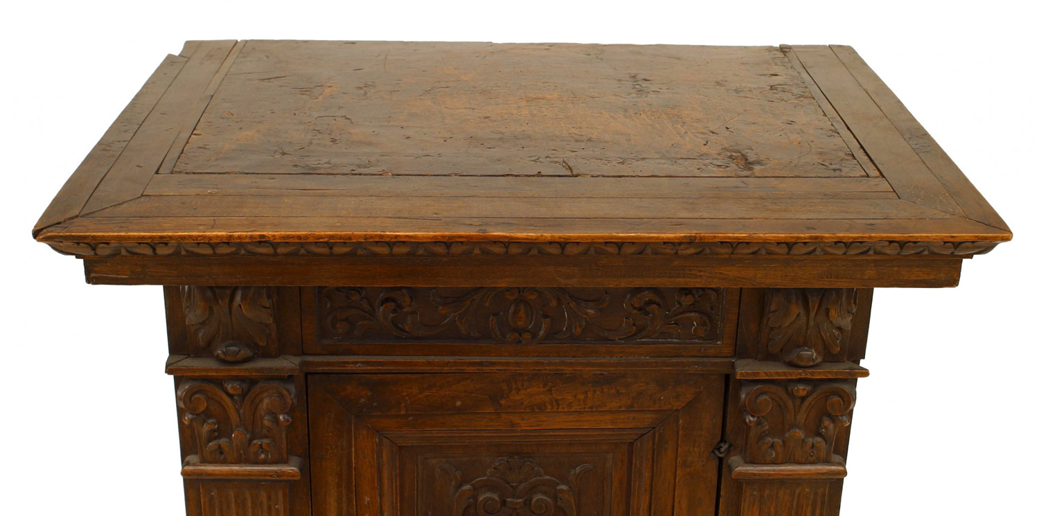 Italian Renaissance style (19th Century) small walnut single door commode with pilaster sides..