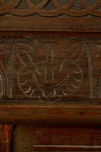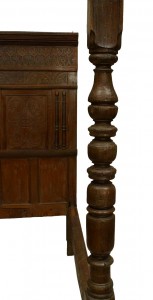 Italian Renaissance-style (17th Century) carved walnut panel full size headboard with large post footboard (includes: headboard, footboard, and rails).