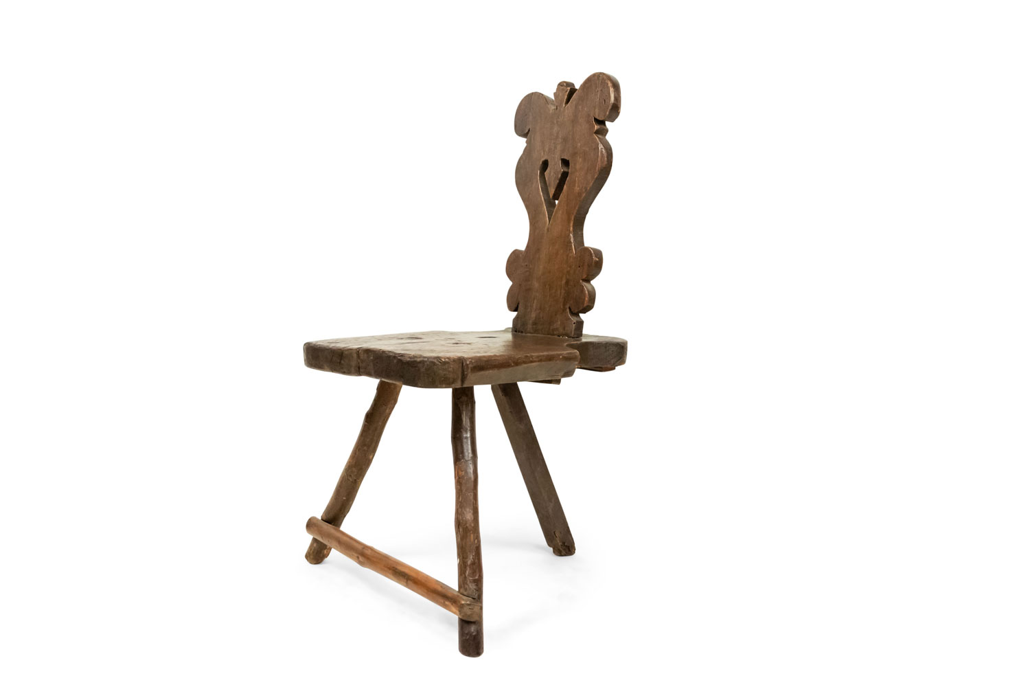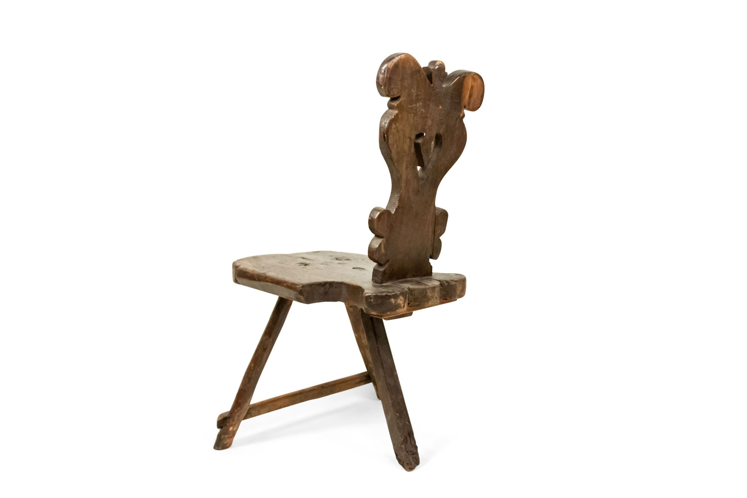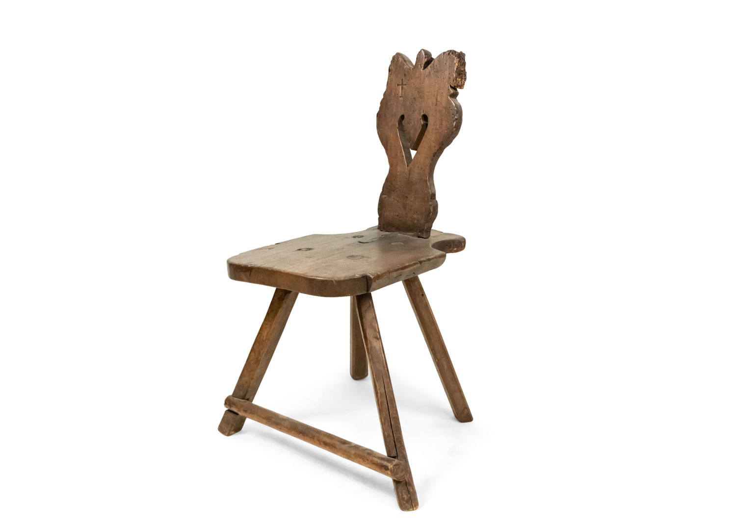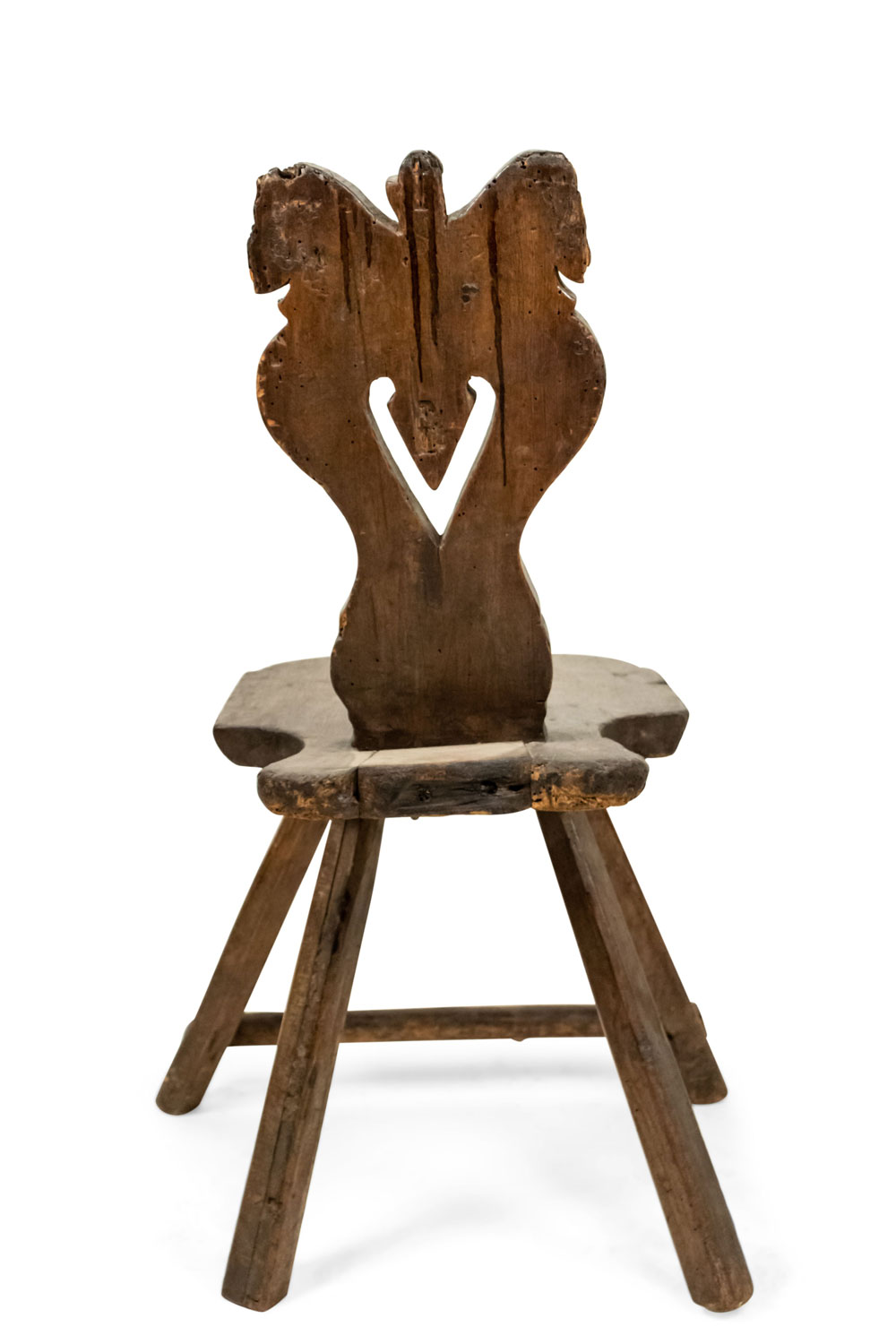 2 Similar Italian Renaissance style (17th Cent) walnut straight 4 legged sgabelli with V cut on back (PRICED EACH)(one with incised cross).
