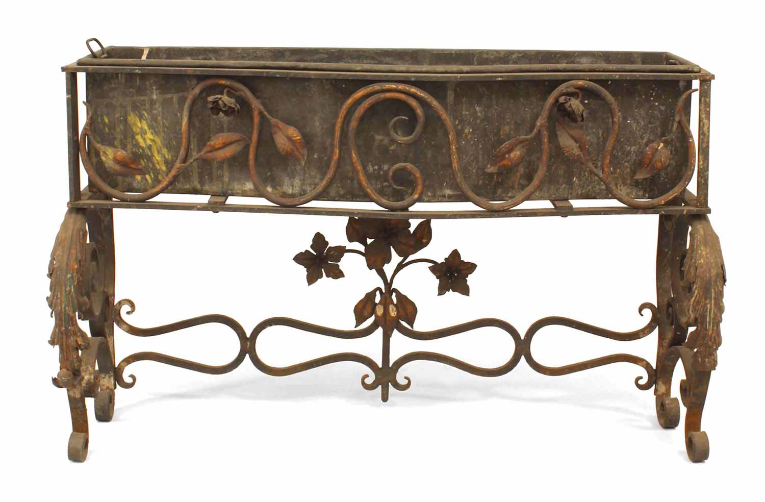 Italian Renaissance-style (19/20th Century) rectangular shaped wrought iron low fernery with floral and scroll design..