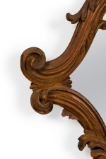 2 Italian Rococo-style (20th Century) fruitwood cartouche form wall mirrors with strap-work and scrolling surround. (PRICED EACH)