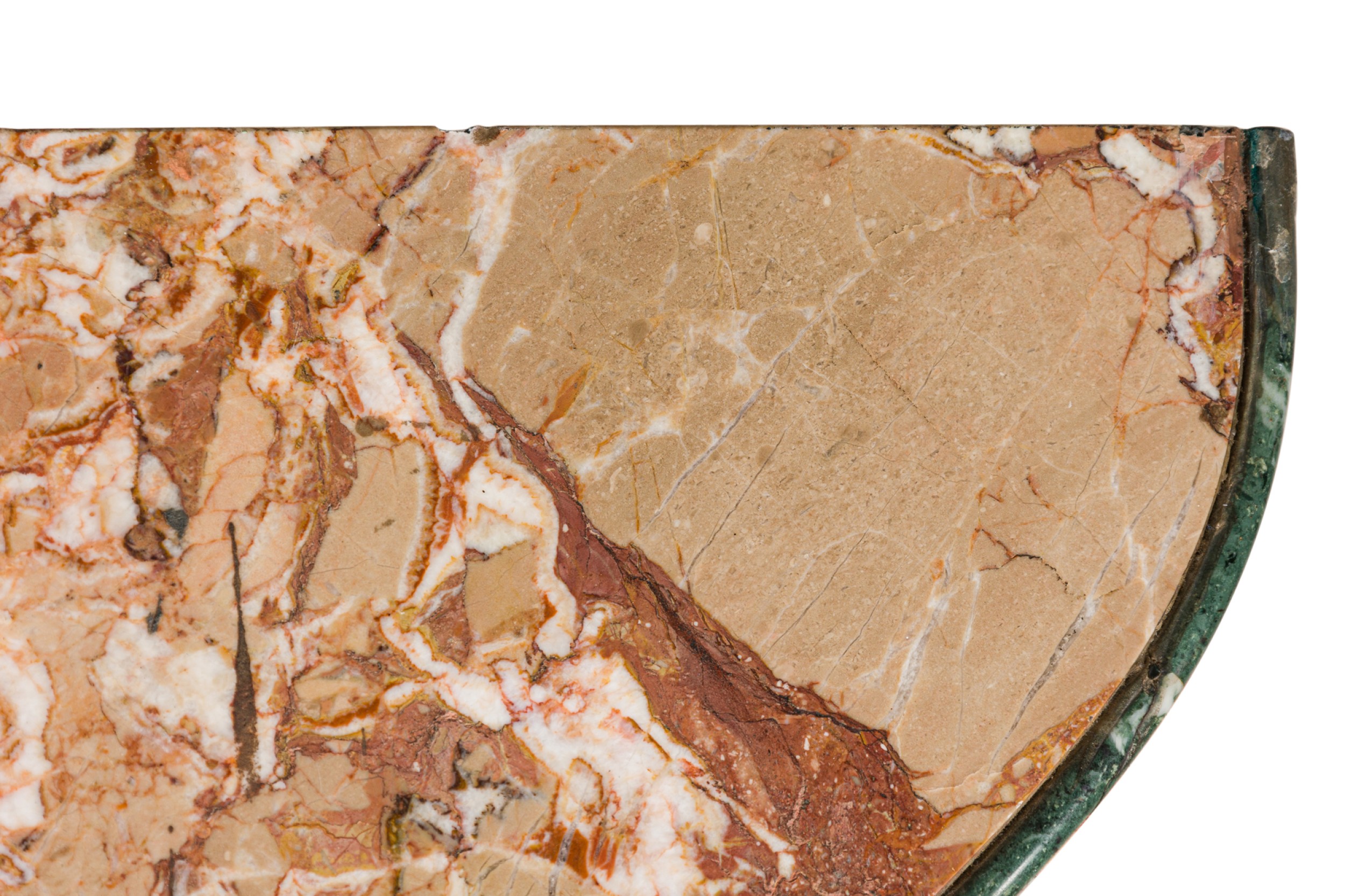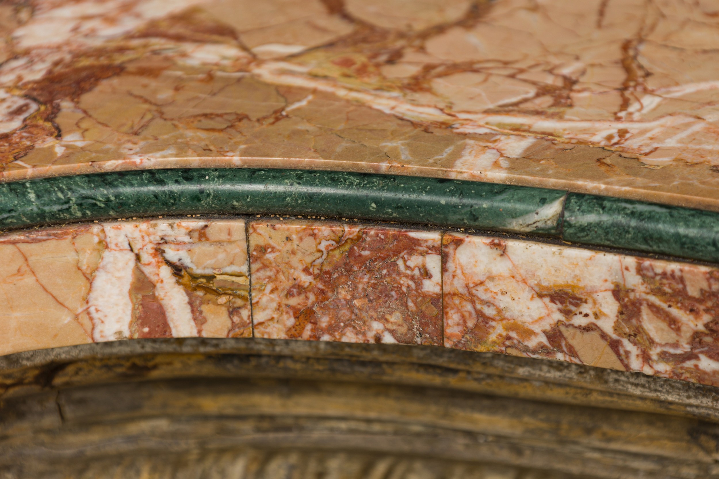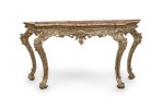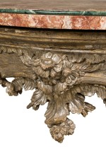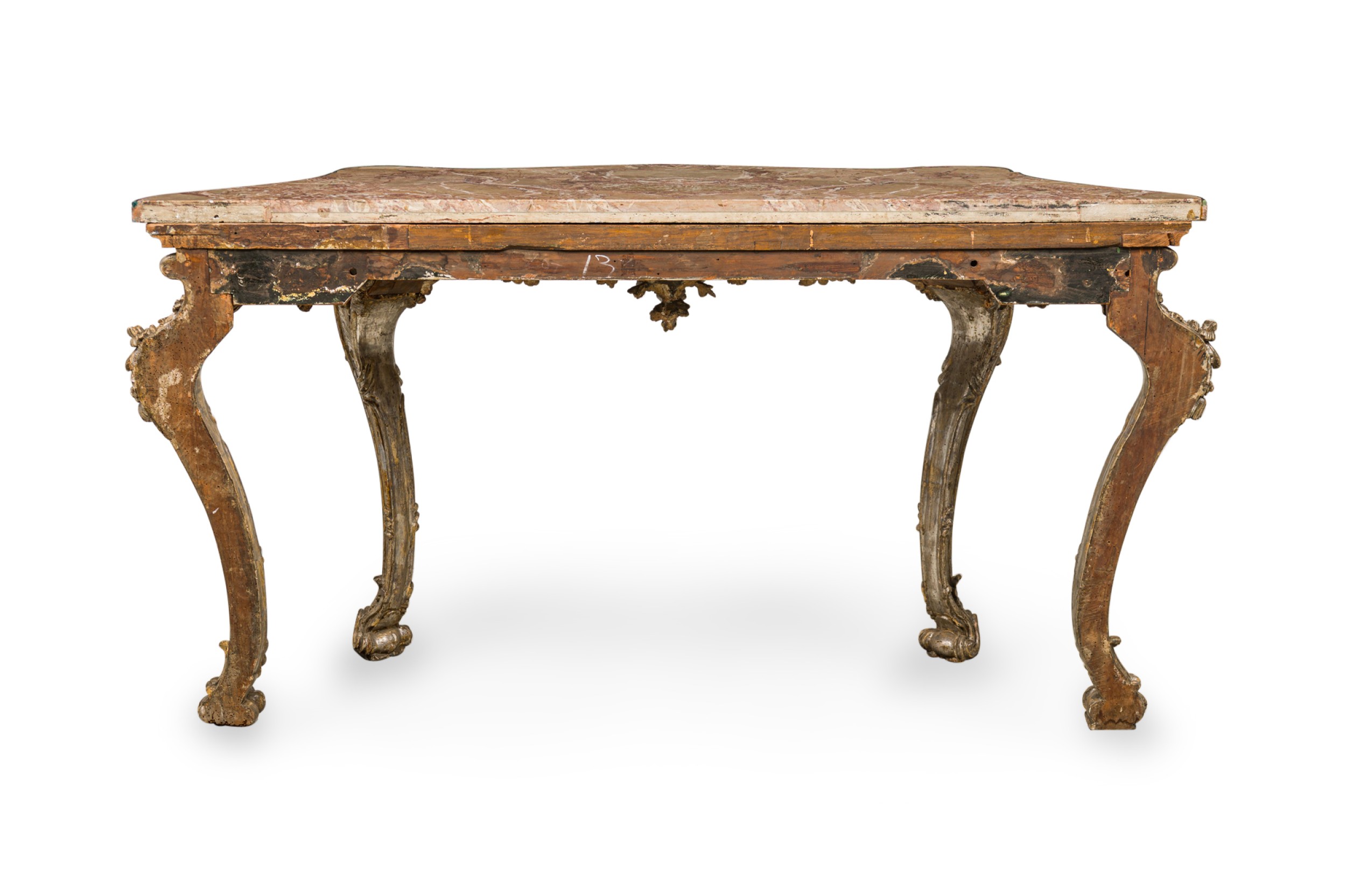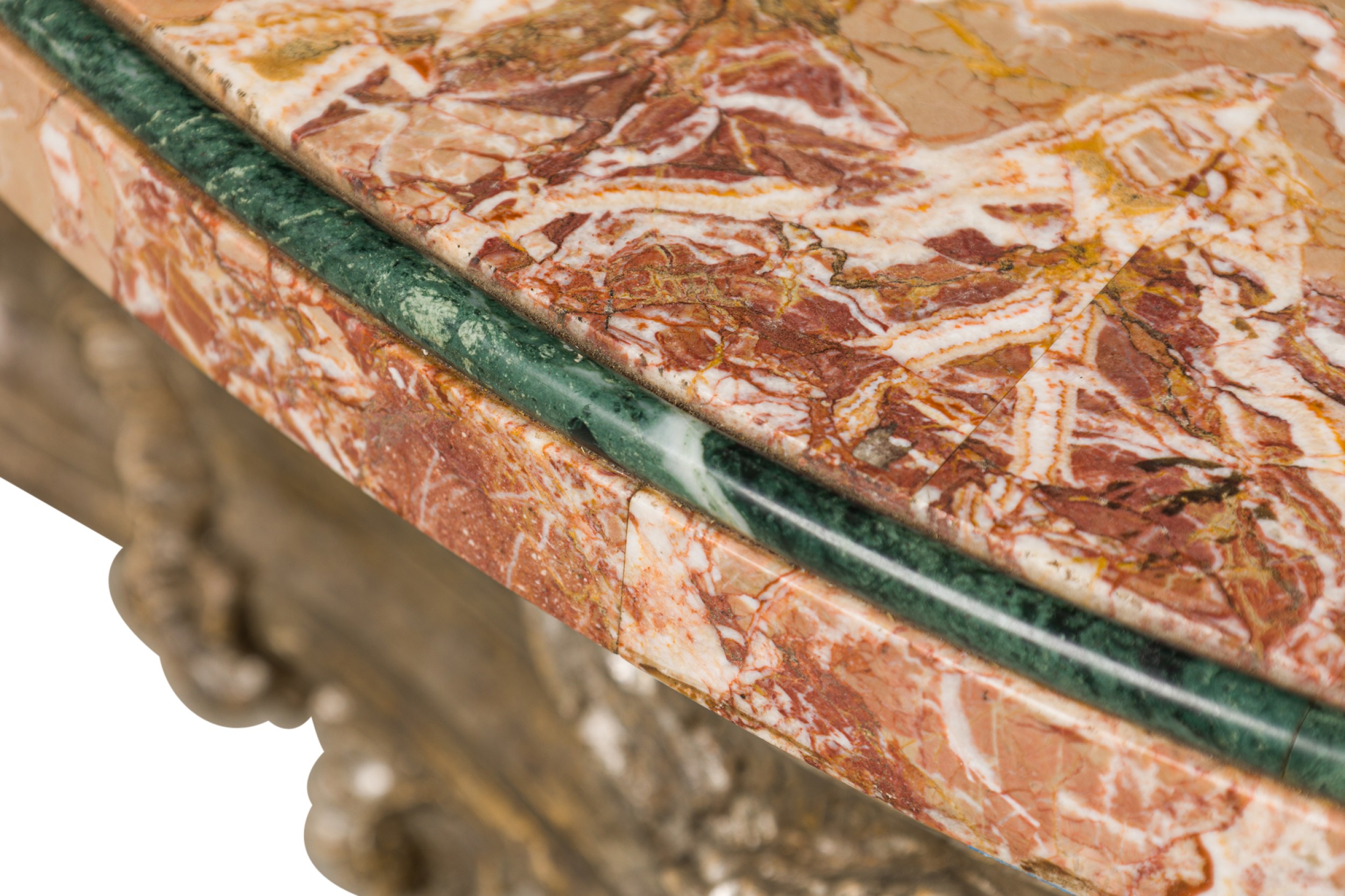 Italian Rococo Carved Silver Gilt and Blush and Green Marble Top Console Table