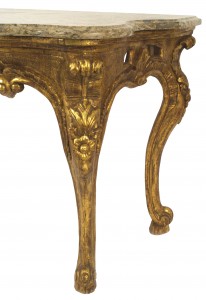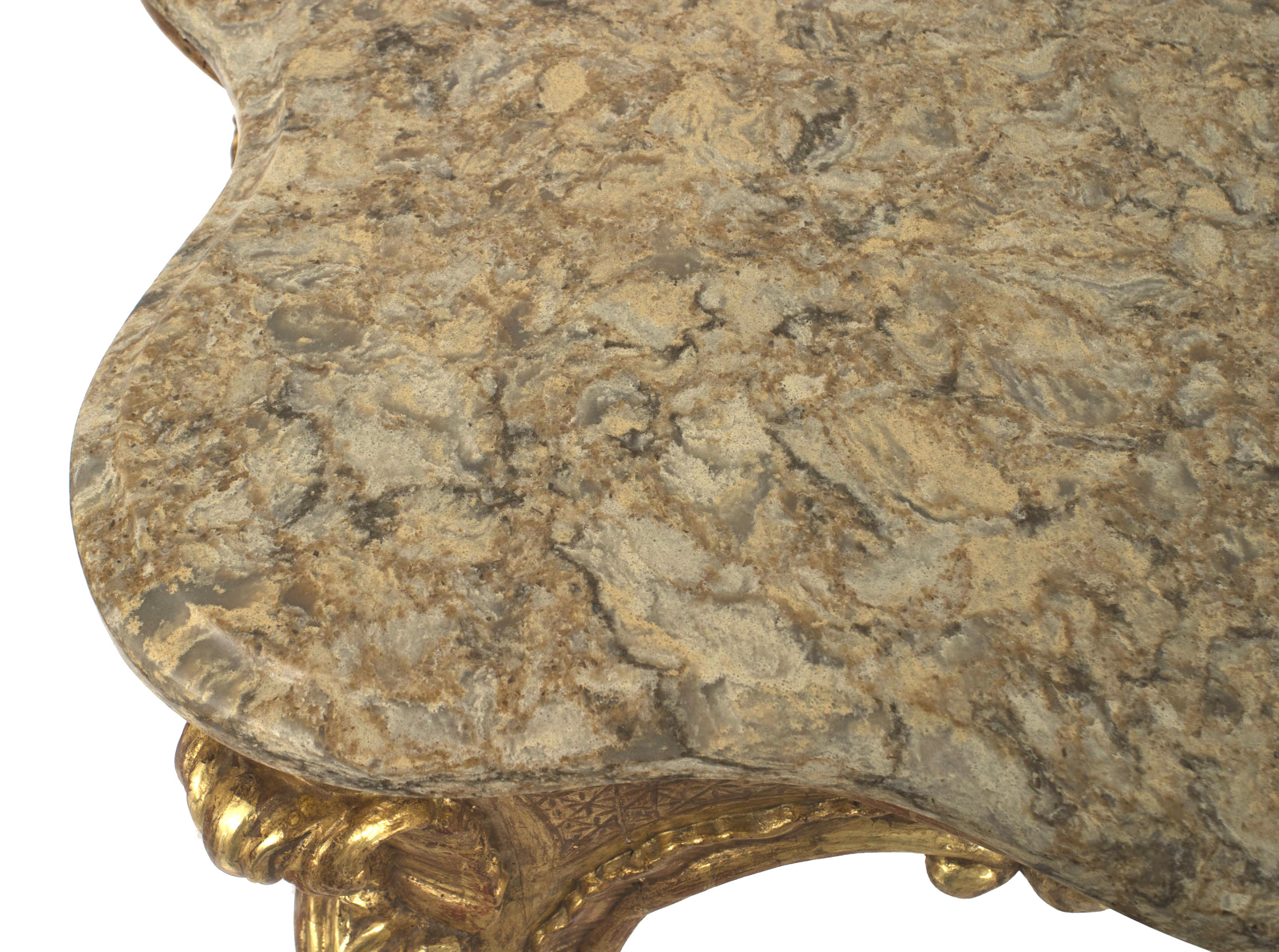 Italian Rococo (18th Century) gilt carved console table with a serpentine shaped top and open design front and side to the apron. (Marble top to be made)