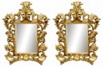 PAIR of Italian Rococo-style (possible Florence, 19th Century) giltwood wall mirrors with rectangular plates within a scrolling acanthus frame. (PRICED AS PAIR)