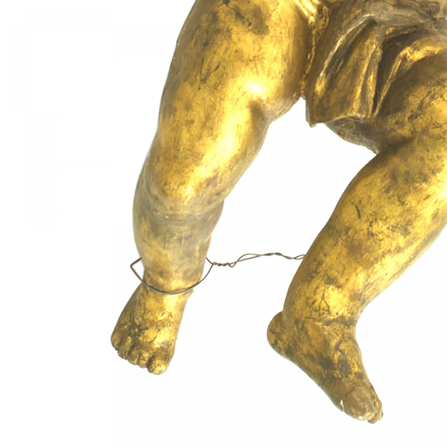 PAIR of Italian Rococo (18th Cent) gold painted life size hanging cupid figures.