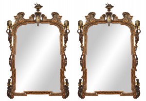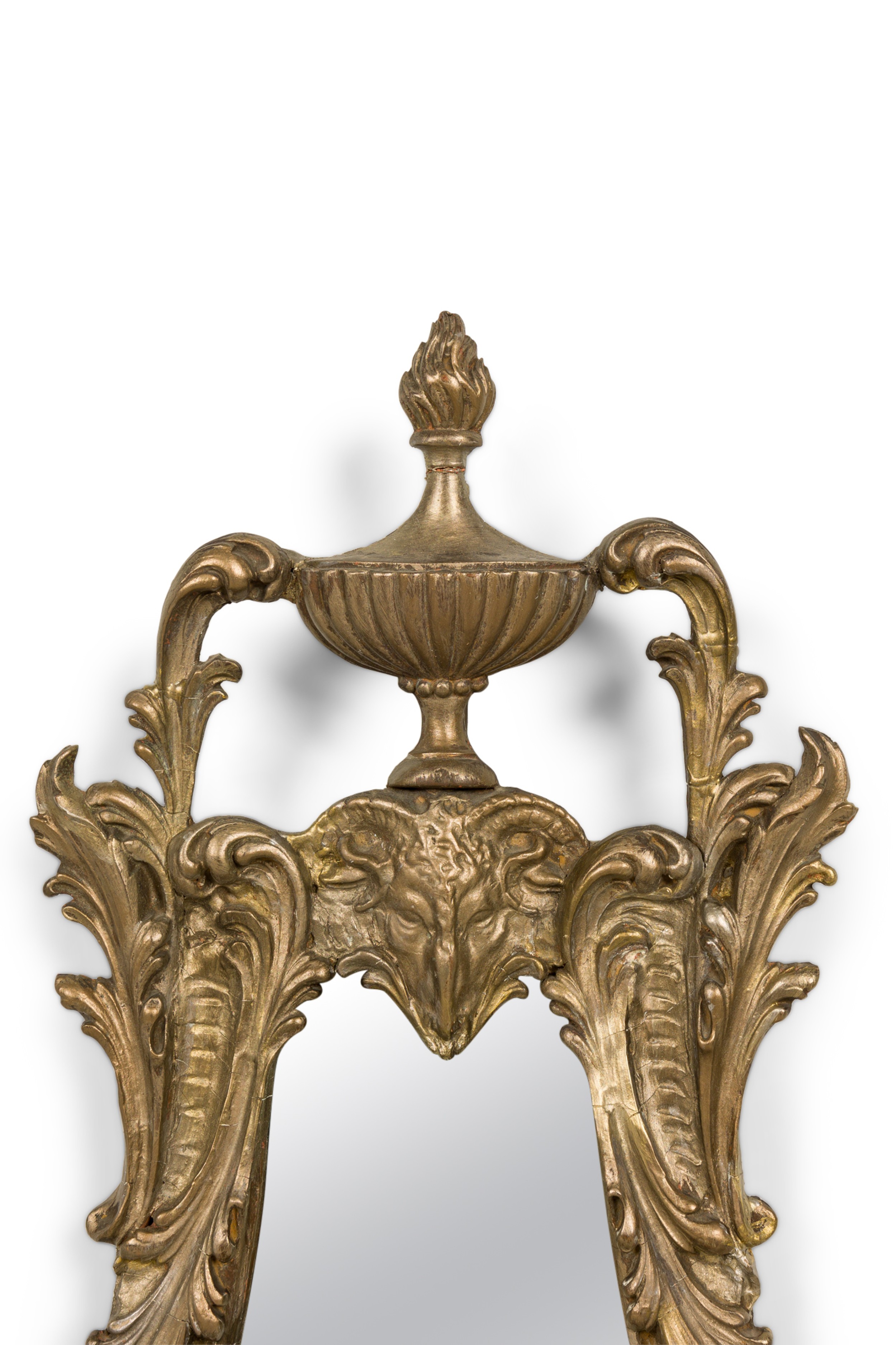 Italian Rococo style (19/20th Century) carved silver gilt wall mirror with two small eagle figures and urn finial top.