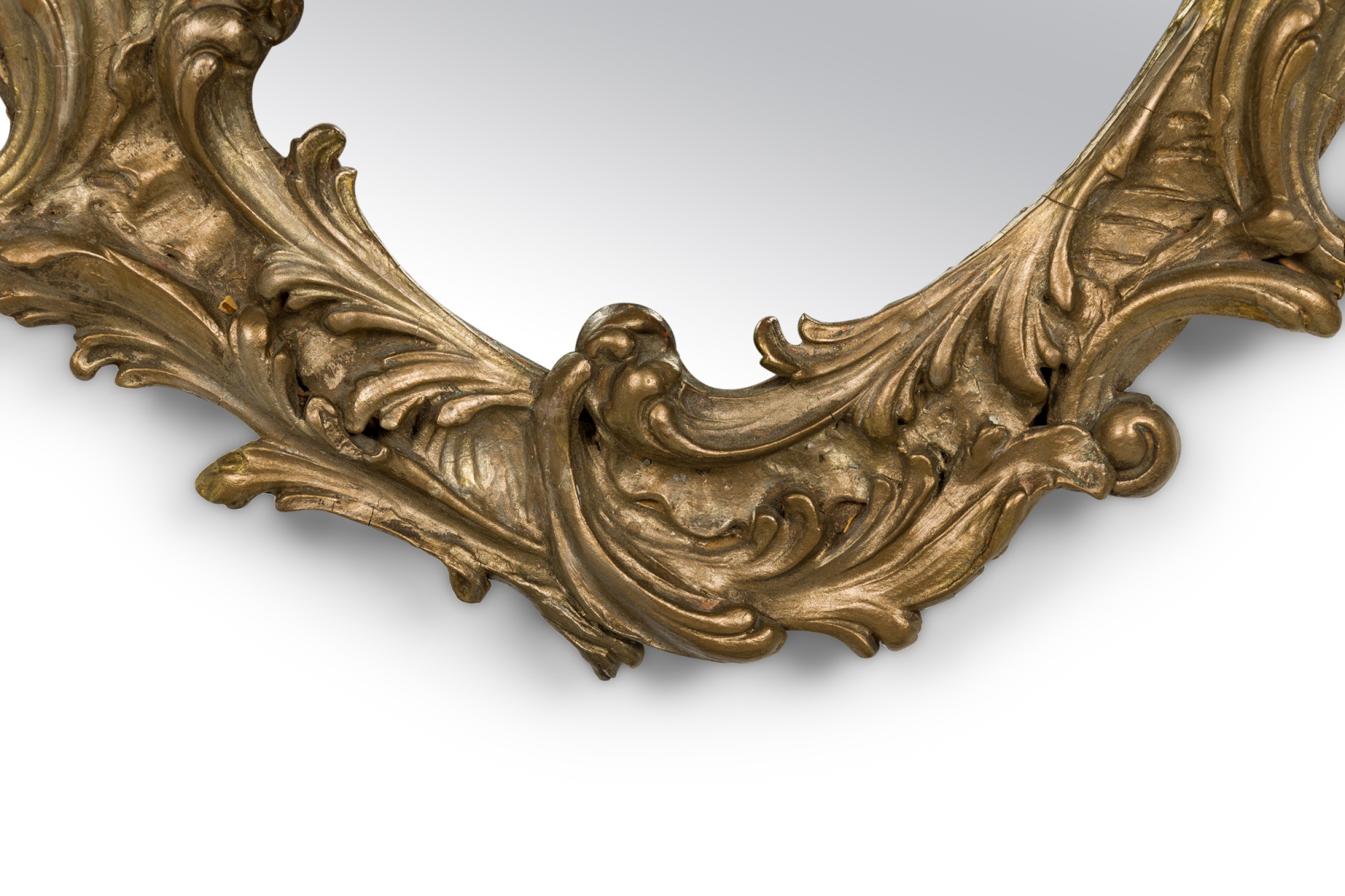 Italian Rococo style (19/20th Century) carved silver gilt wall mirror with two small eagle figures and urn finial top
