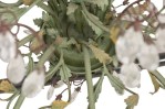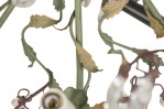 Italian Rococo Style (Mid-Century) 10 arm chandelier having gold floral and foliage elements with intricate crystal drops supported on green arms that are asymmetrically arranged bearing candle stand-like bulb holders with a canopy