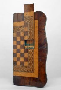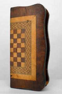 Italian Rococo-style (19th Century) parquetry folding game board with a secret compartment and a felt surface with brass spinners.