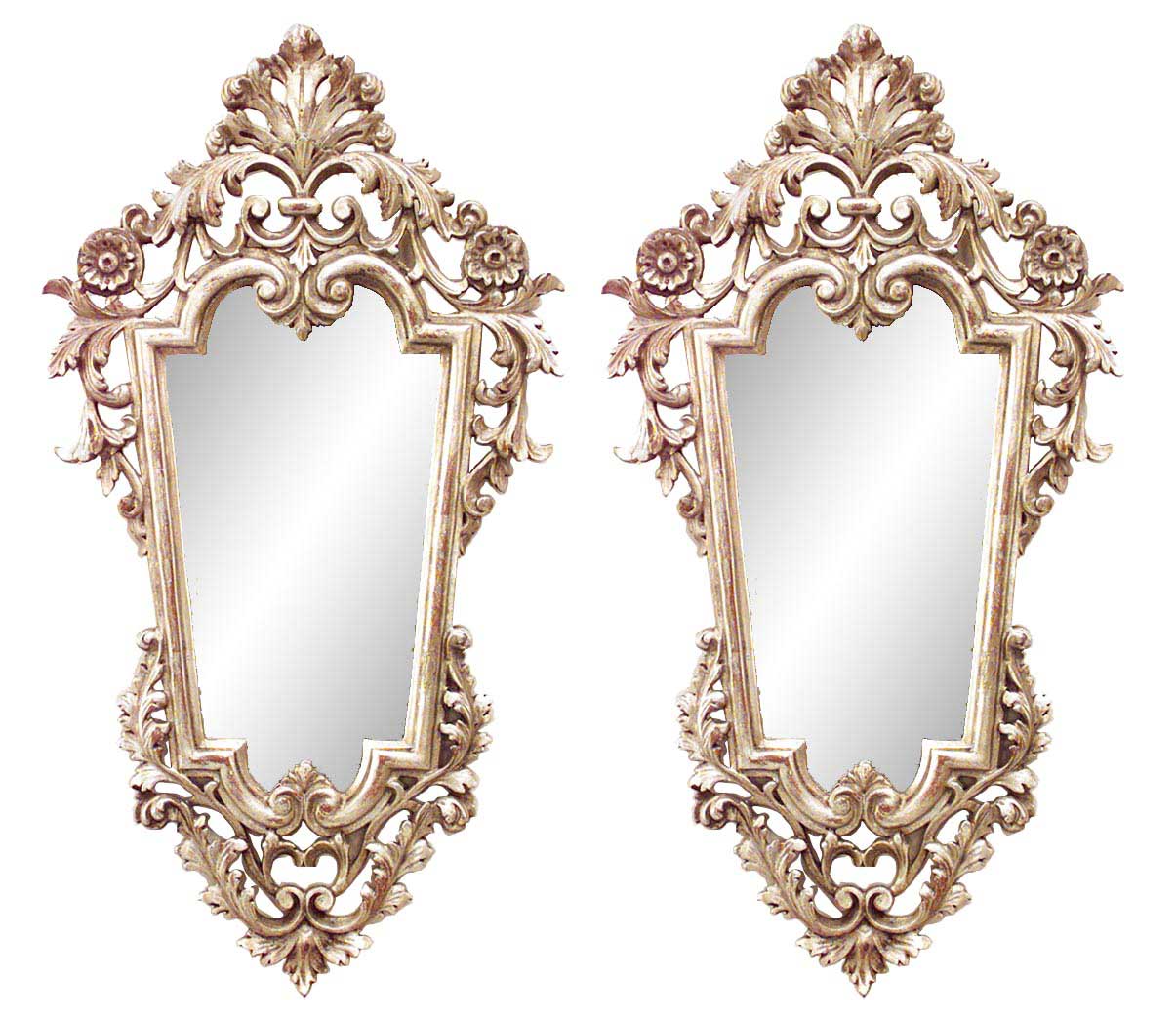 Italian Rococo Style Silver Gilt Carved Wall Mirrors