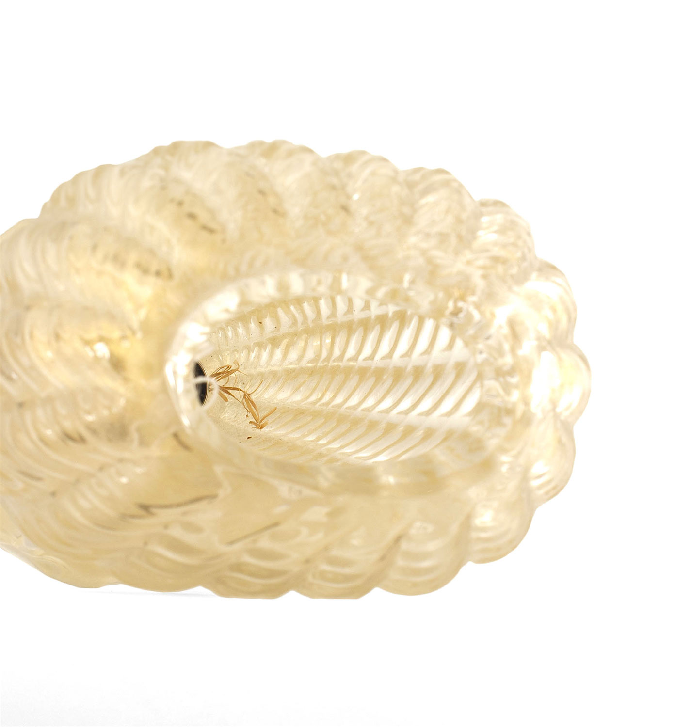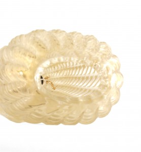 Italian Venetian 1940s swirl gold dusted tapered cylindrical oval shaped glass internal light lamp resting on a round fluted swirl design (BAROVIER ET TOSO)