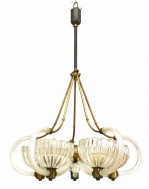 Barovier et Toso Italian Venetian Murano Brass and Glass Chandelier
