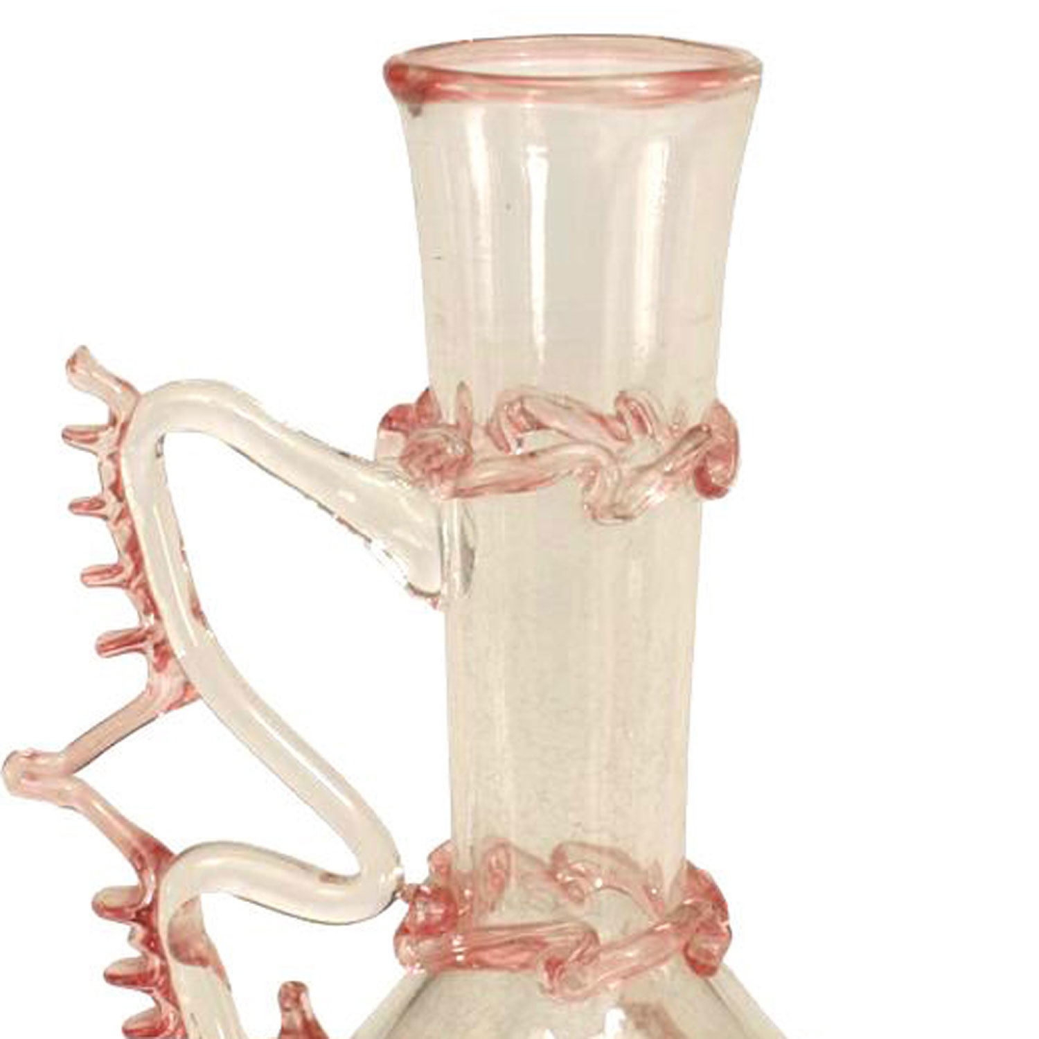 Italian Venetian Murano Glass Bud Vase with Pink Detail Trim