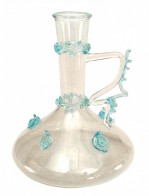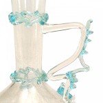 Italian Venetian Murano (circa 1920) bud vase with stylized handle and applied teal colored glass trim (Also available with pink trim: VTP1501A)