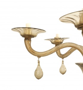 Italian Venetian Murano Smoked Amber Glass Chandelier