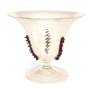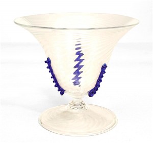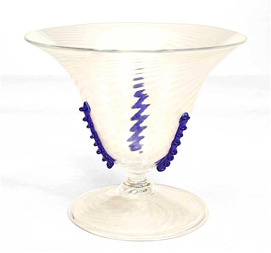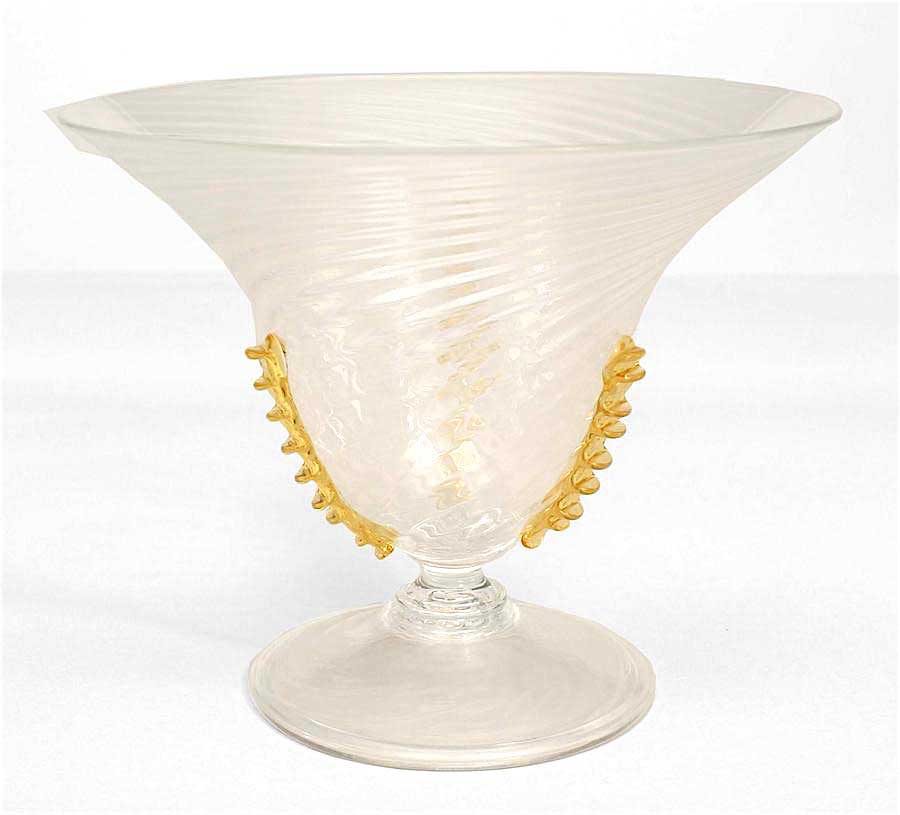 3 Italian Venetian Murano (circa 1920) RIGADIN RITORTO swirl design clear glass compote with 3 applied colored ribbed glass trim (PRICED EACH)