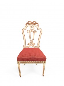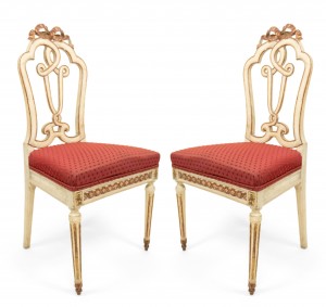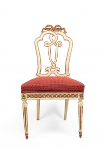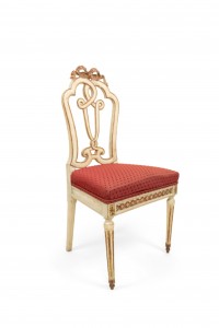 Style: Italian Materials & Techniques: Upholstered, wood, fabric, painted, carved Category: Seating, Office/Library, Dining Room