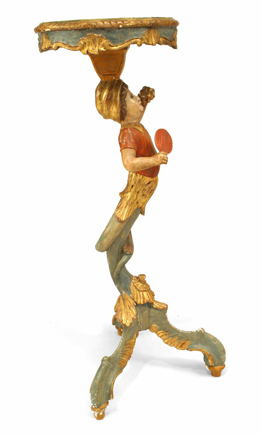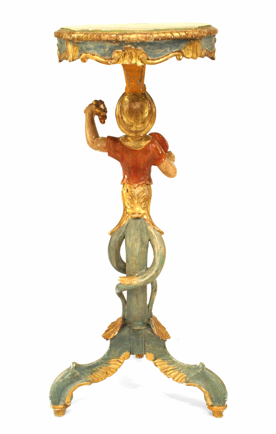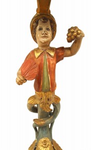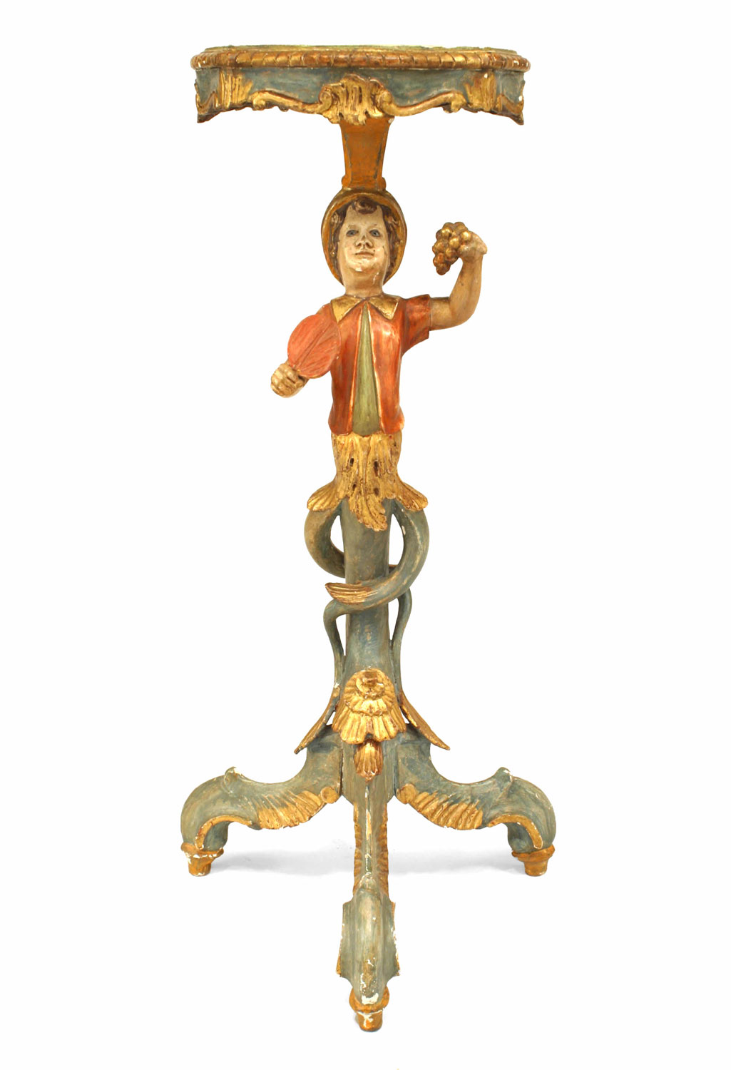 Italian Venetian style (19/20th Cent) polychromed pedestal stand with a figure of a young boy holding a fan and grapes.