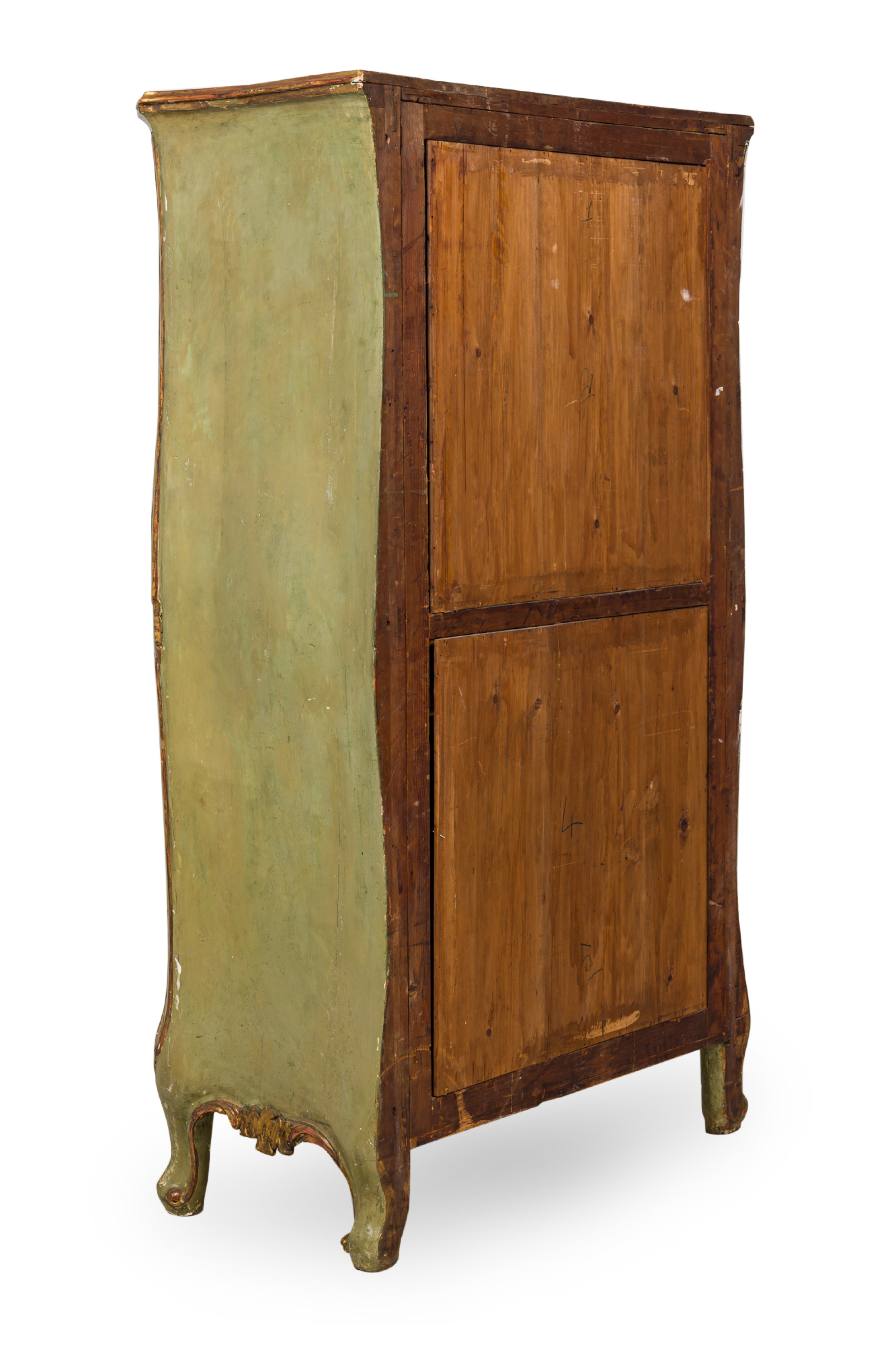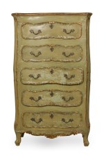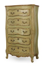 Italian Venetian / Rococo Style Green Painted and Parcel Gilt 5 Drawer Semainier / Dresser
