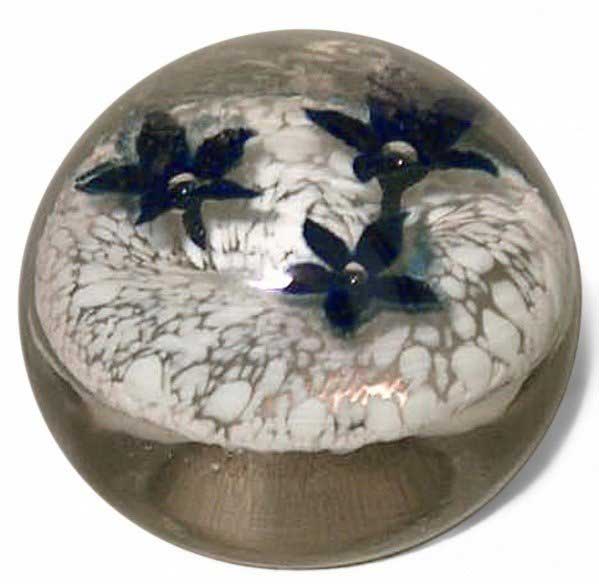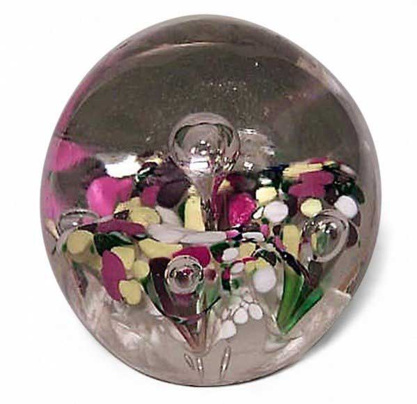 Italian Venetian-style (20th Century) multi colored round crystal paperweight with floral design..