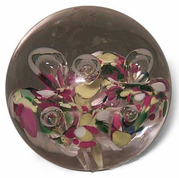 Italian Venetian-style (20th Century) multi colored round crystal paperweight with floral design.