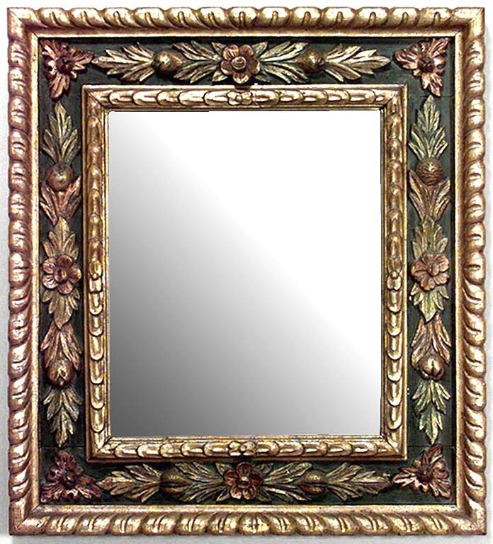 Italian Venetian-style (19th/20th Century) gilt and polychromed rectangular wall mirror with a carved floral frame.