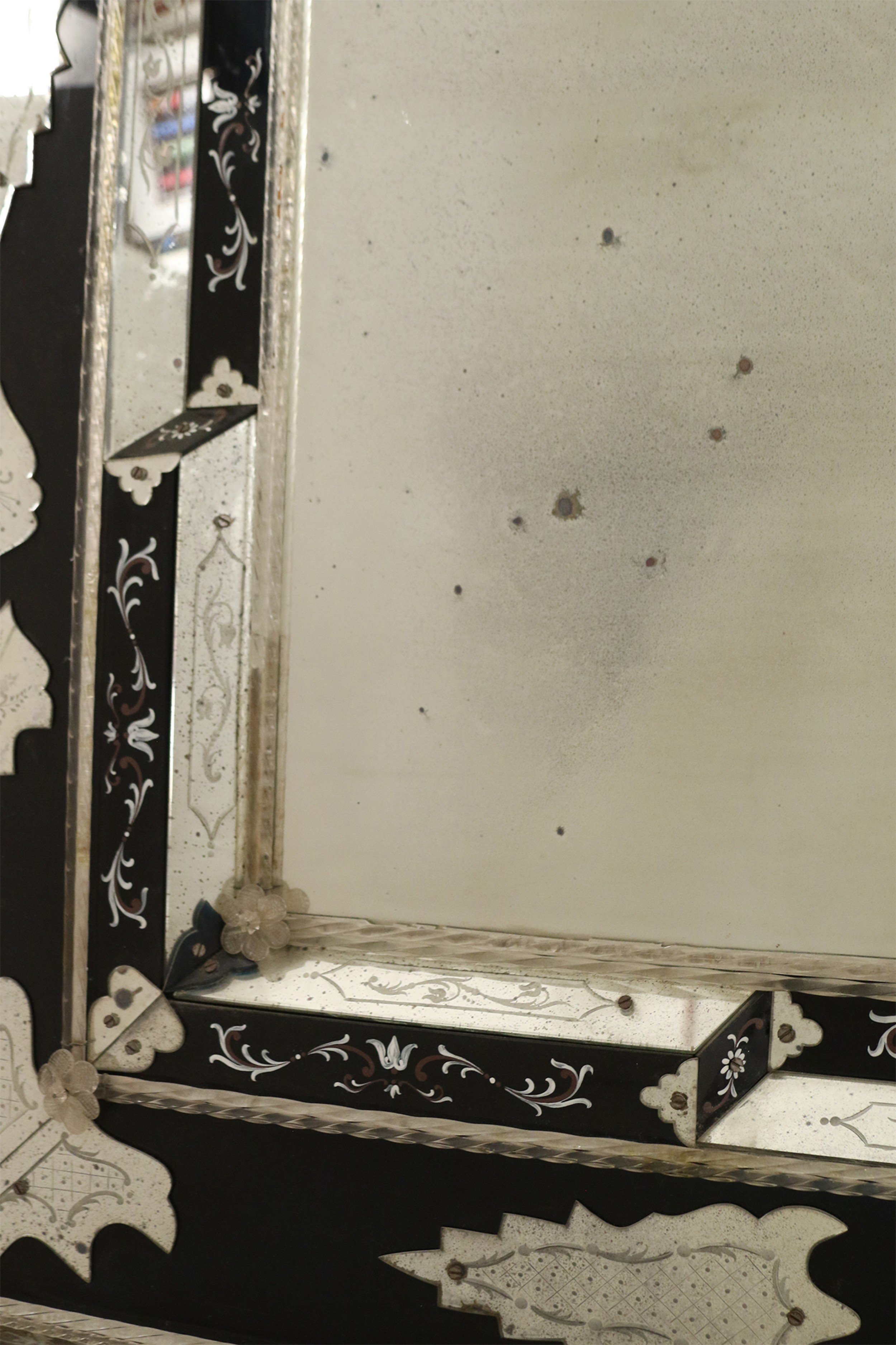 Italian Venetian Style Monumental Etched Glass Wall Mirror