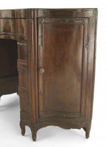Italian Venetian (18th Century) walnut serpentine shaped desk with 2 side doors and 2 narrow front doors above a drawer with a pull out front interior chair having a left arm.