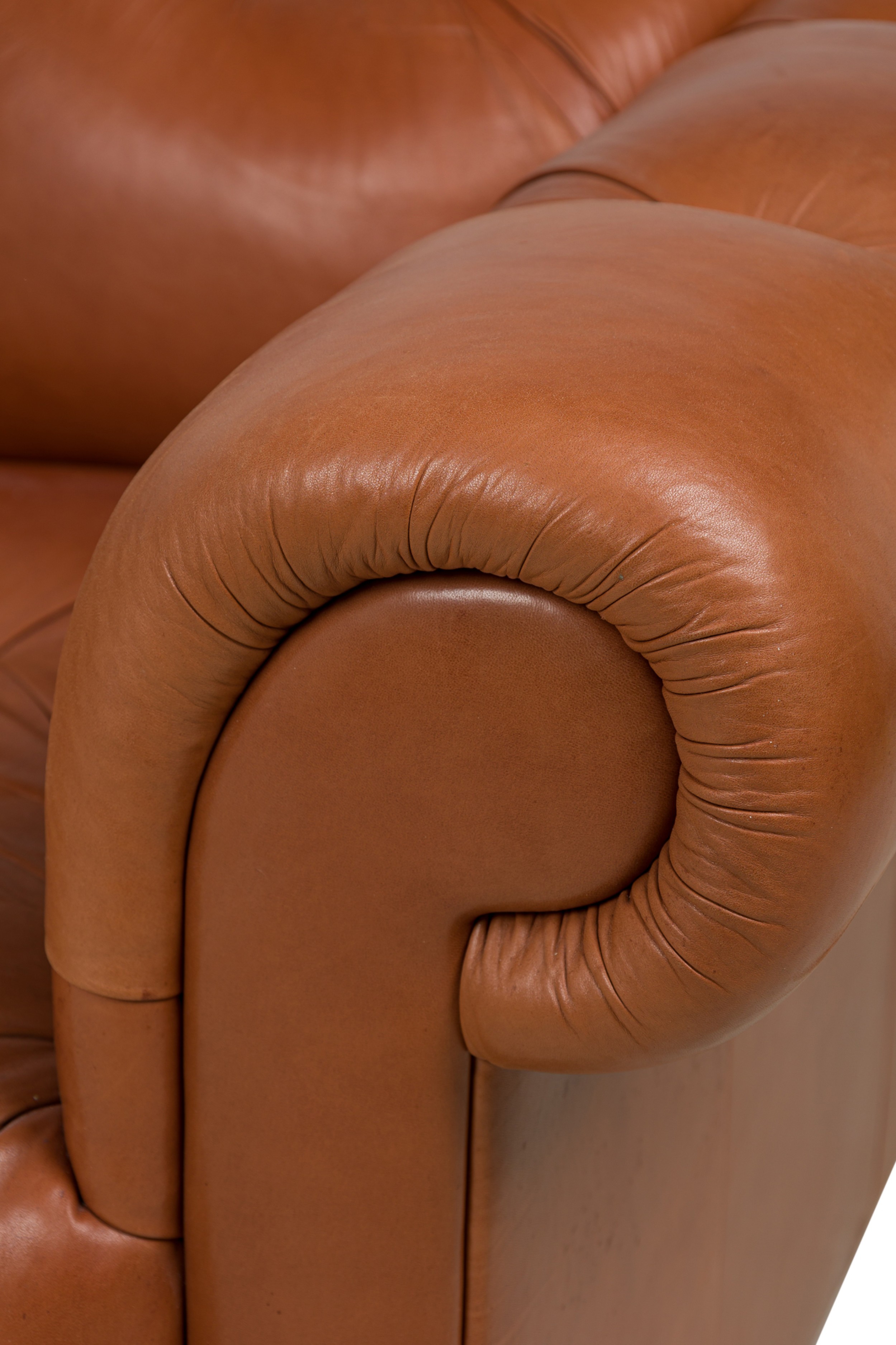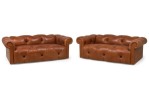 J Robert Scott Pair of American Mid-Century Tufted Brown Leather Chesterfield Sofa