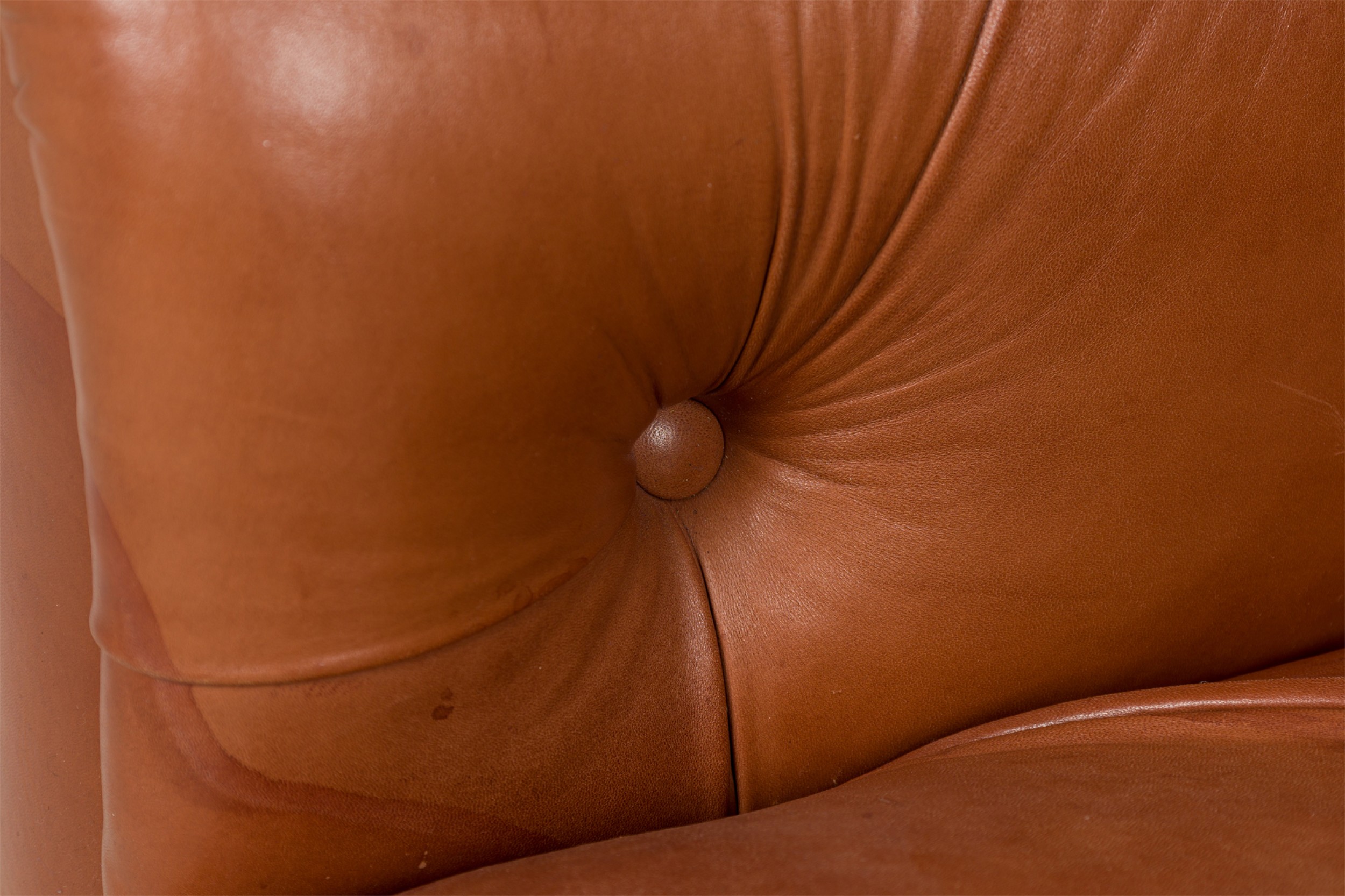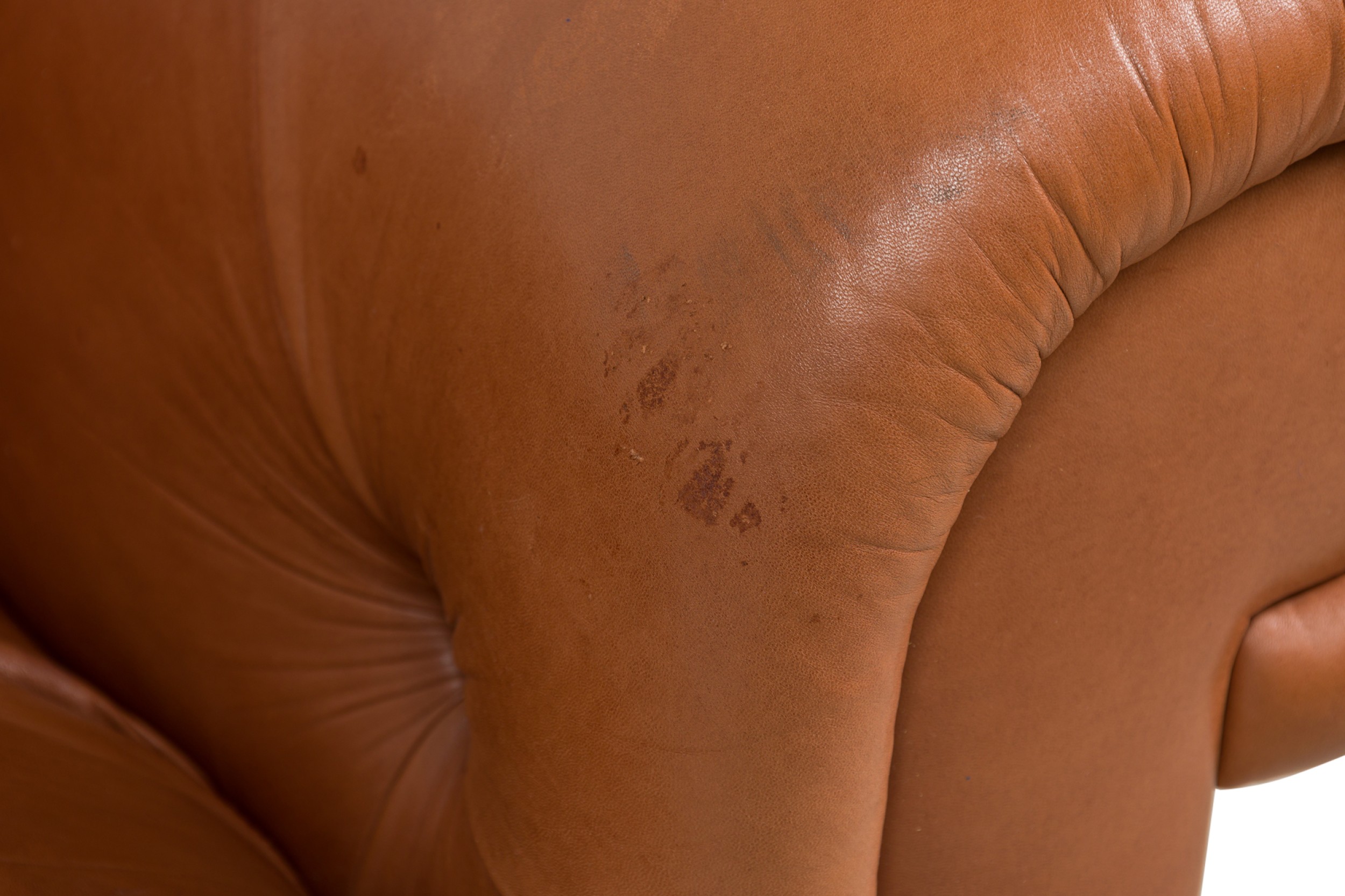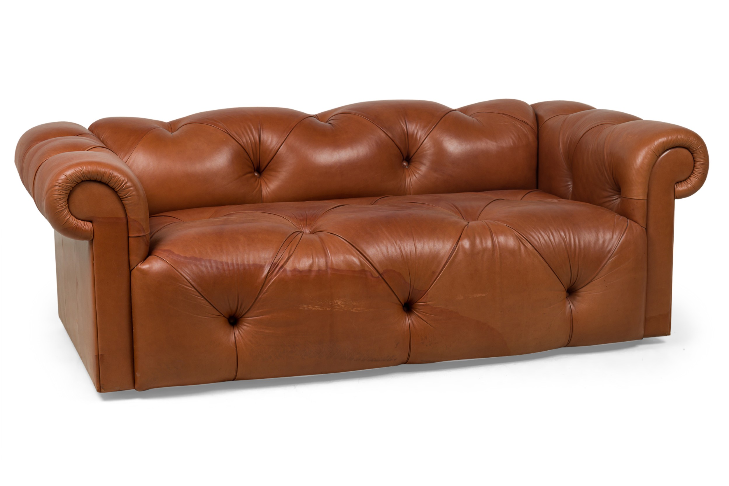 Style: Mid-Century Materials & Techniques: Leather Category: Seating Condition: VARIOUS WATER STAINS AND DISCOLORATION