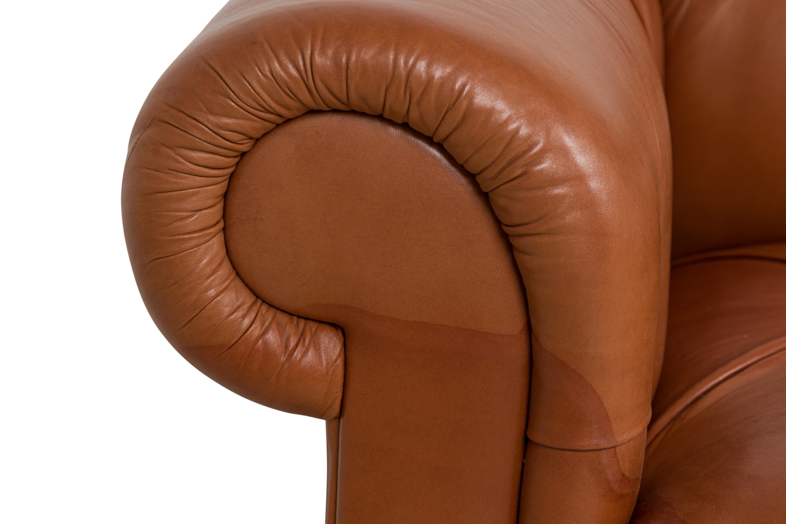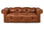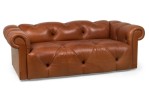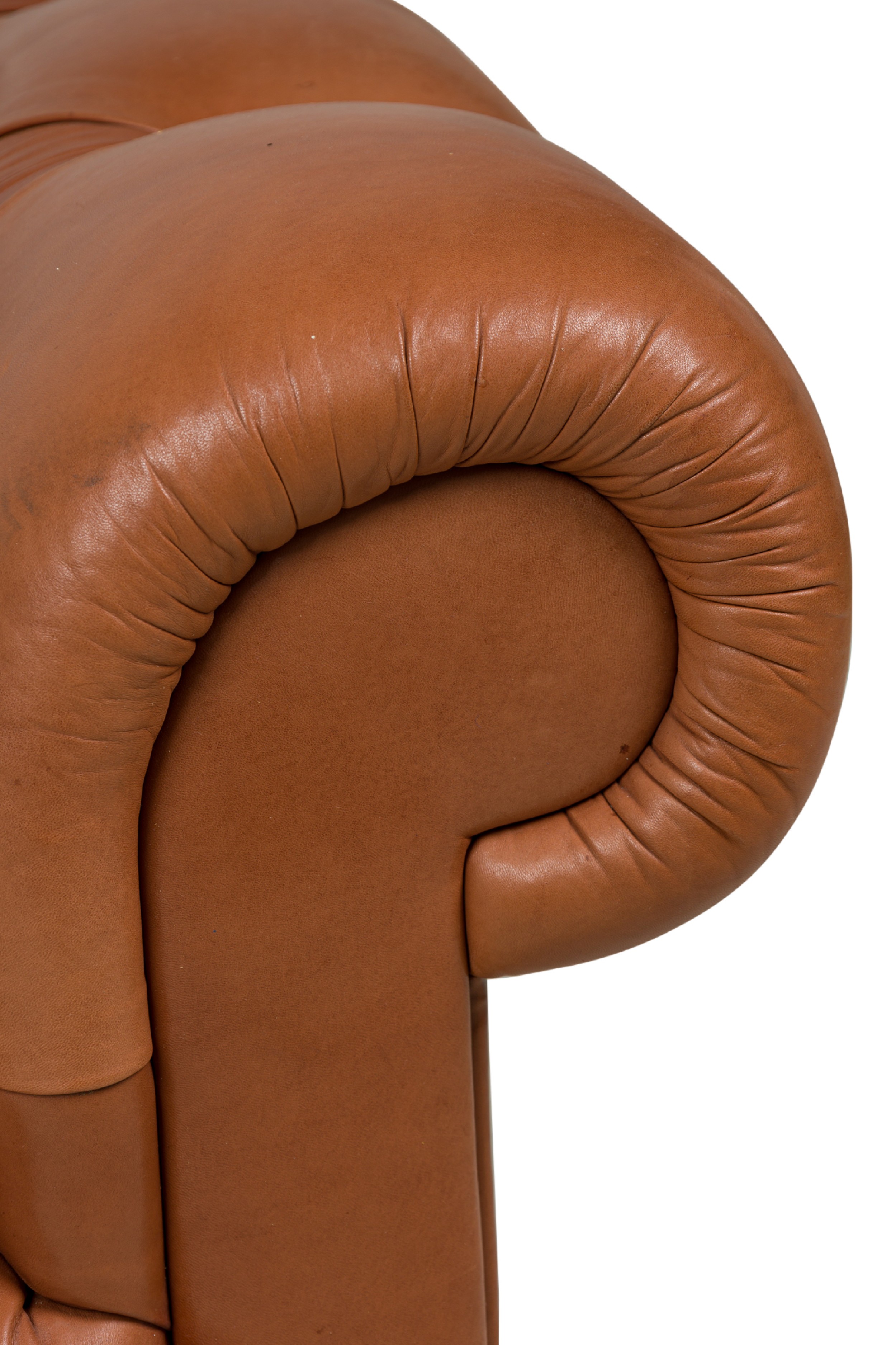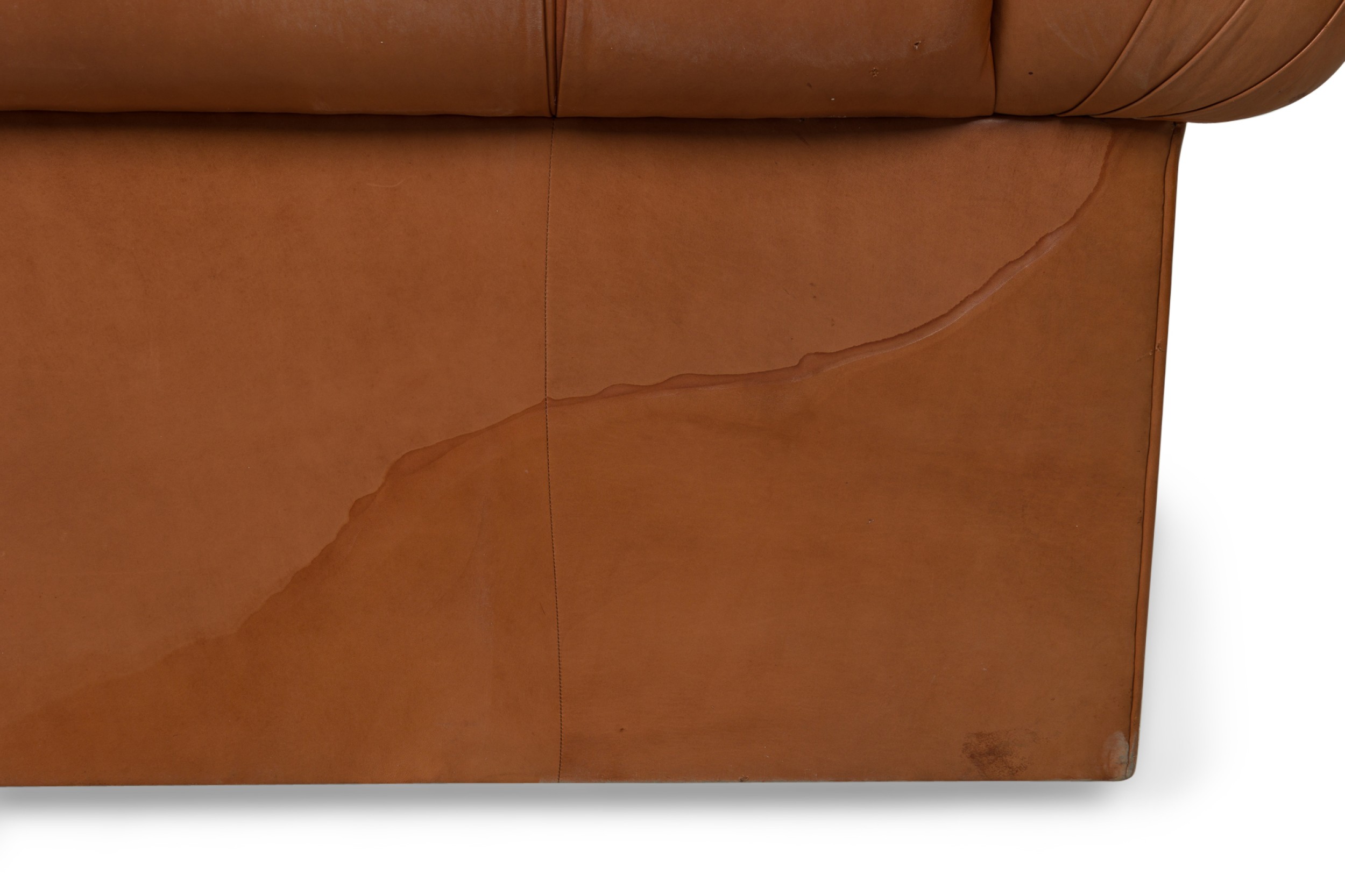 PAIR of American Mid-Century tufted brown / tan tufted leather chesterfield 3 seater sofas (J. ROBERT SCOTT)(PRICED AS PAIR)