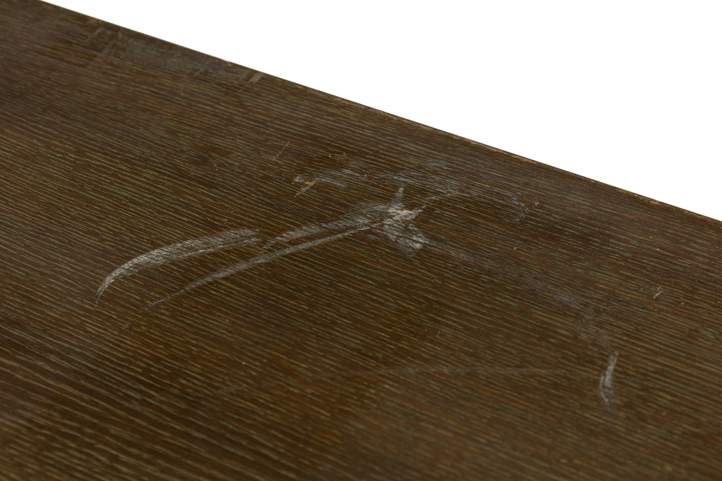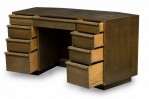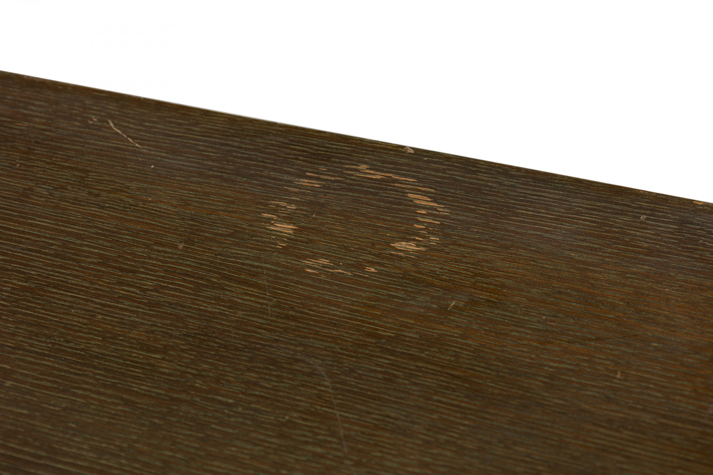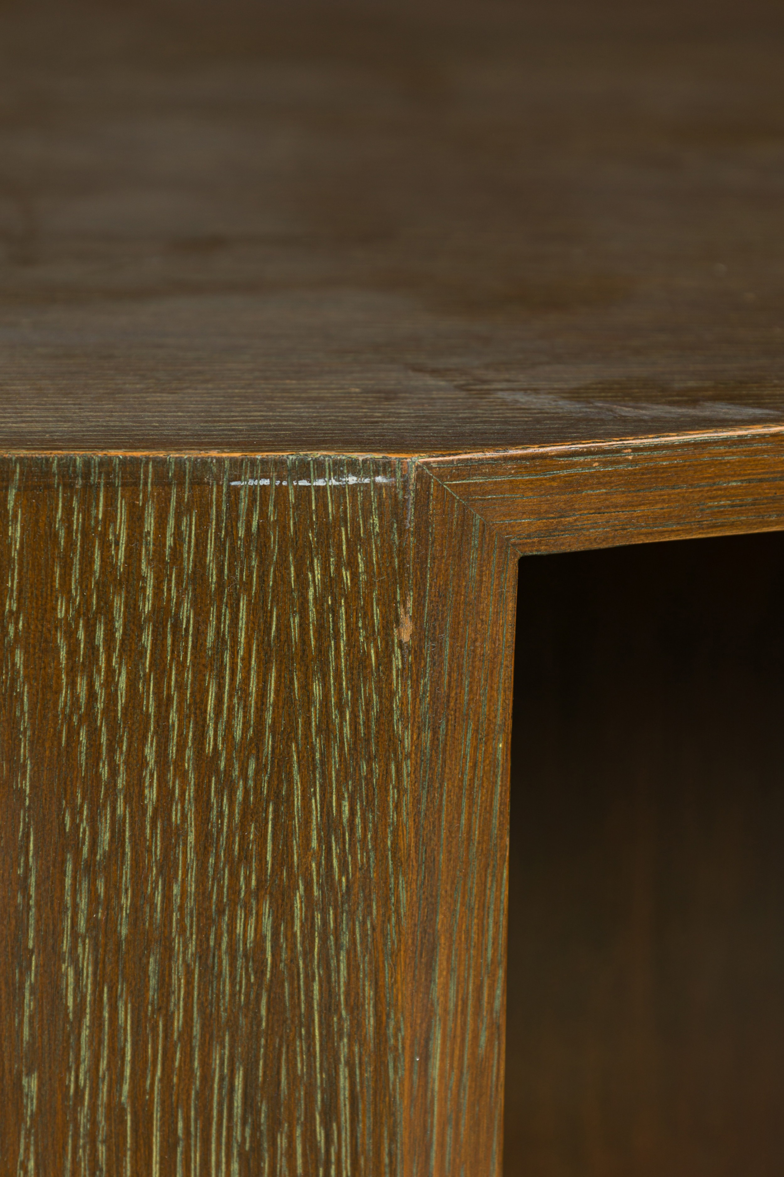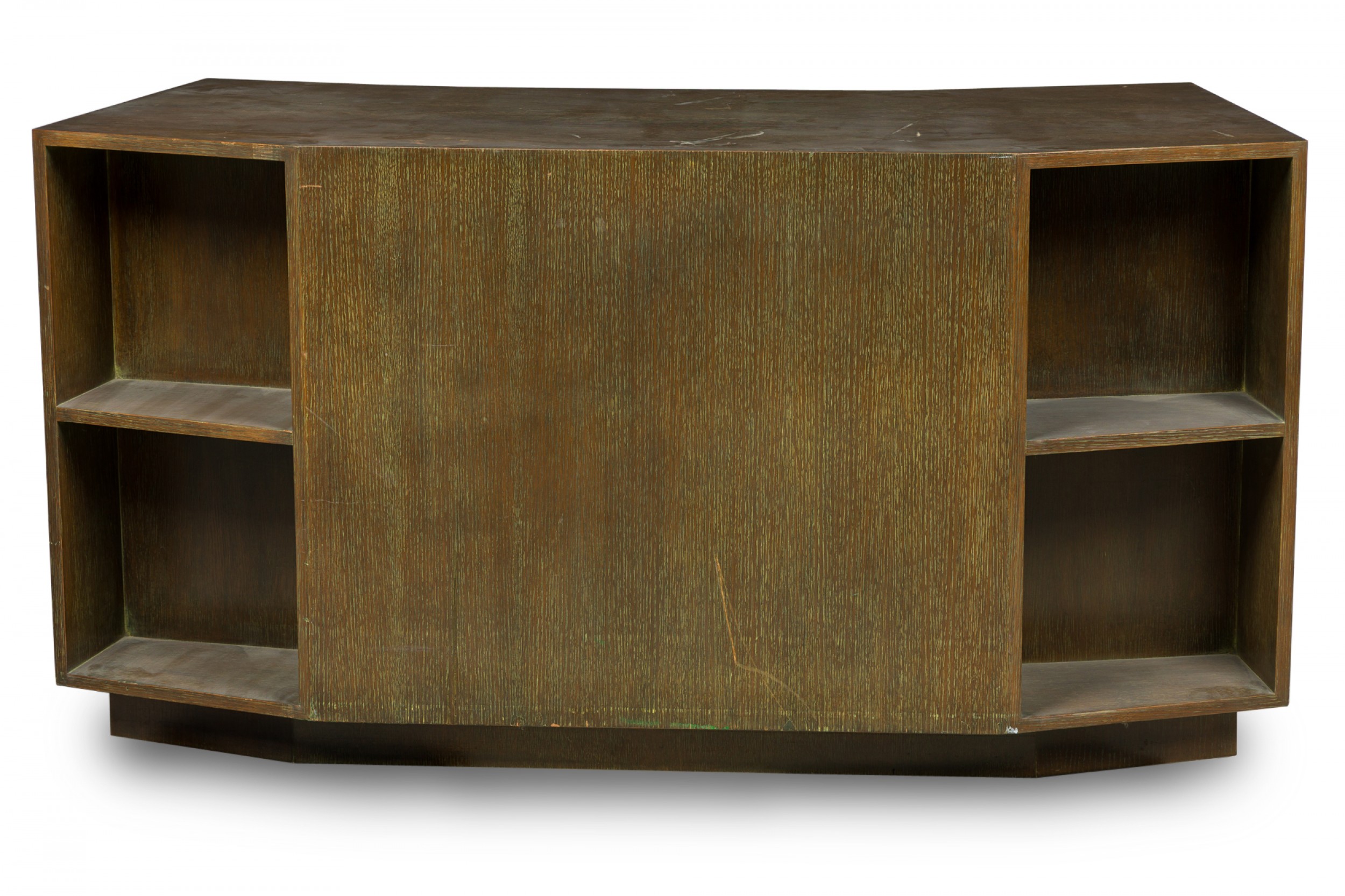 Style: Mid-Century Materials & Techniques: Cerused, oak, wood Category: Office/Library Condition: Scratches and wear to finish, some veneer losses around corners. Good; Wear consistent with age and use