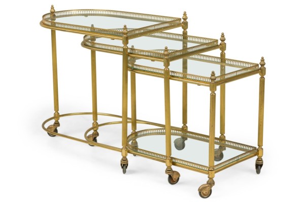 Style: Mid-Century Materials & Techniques: Brass, shagreen Category: Tables
