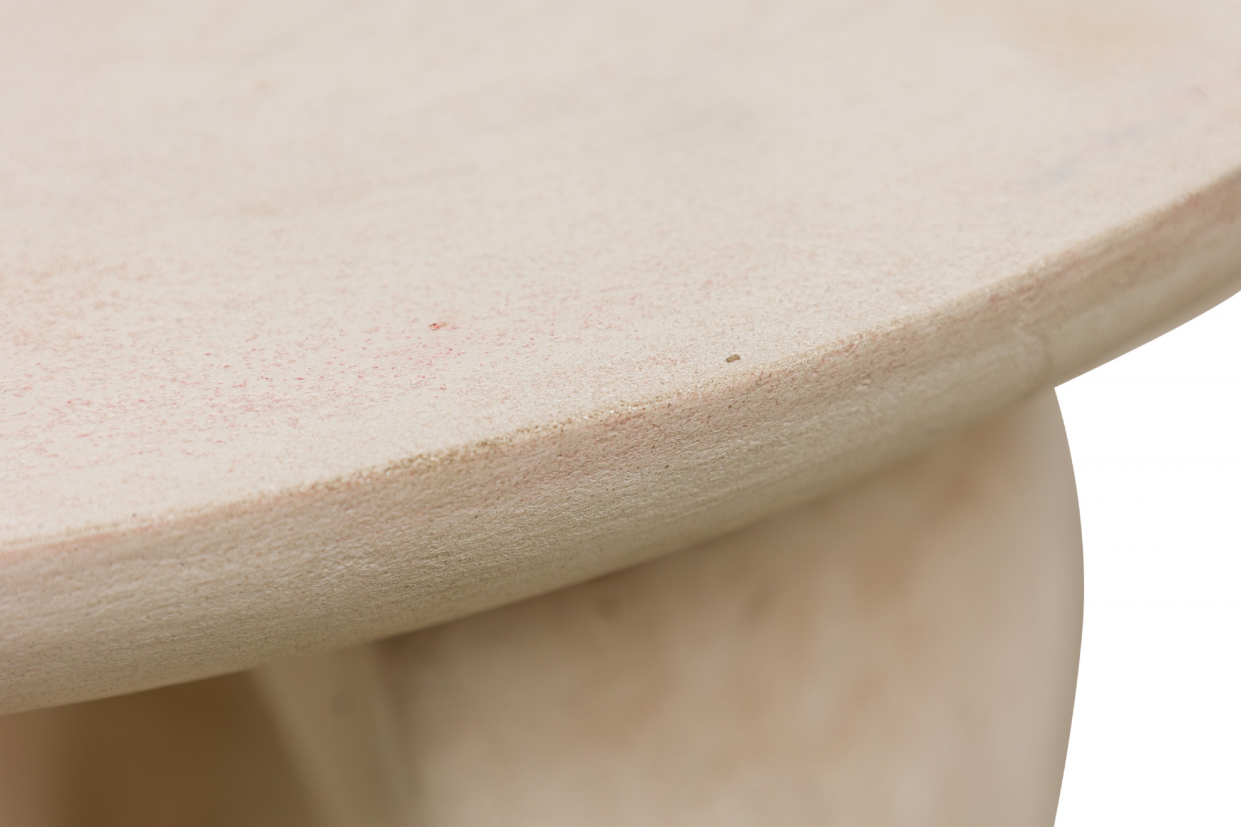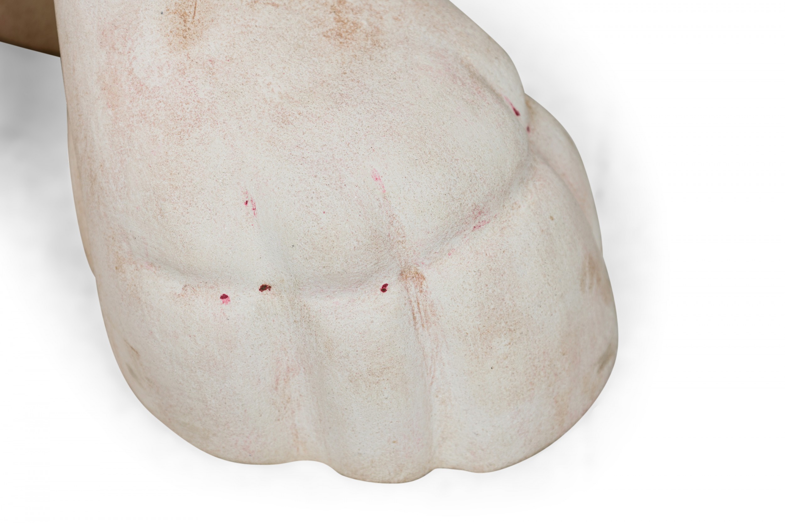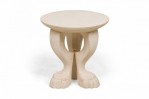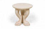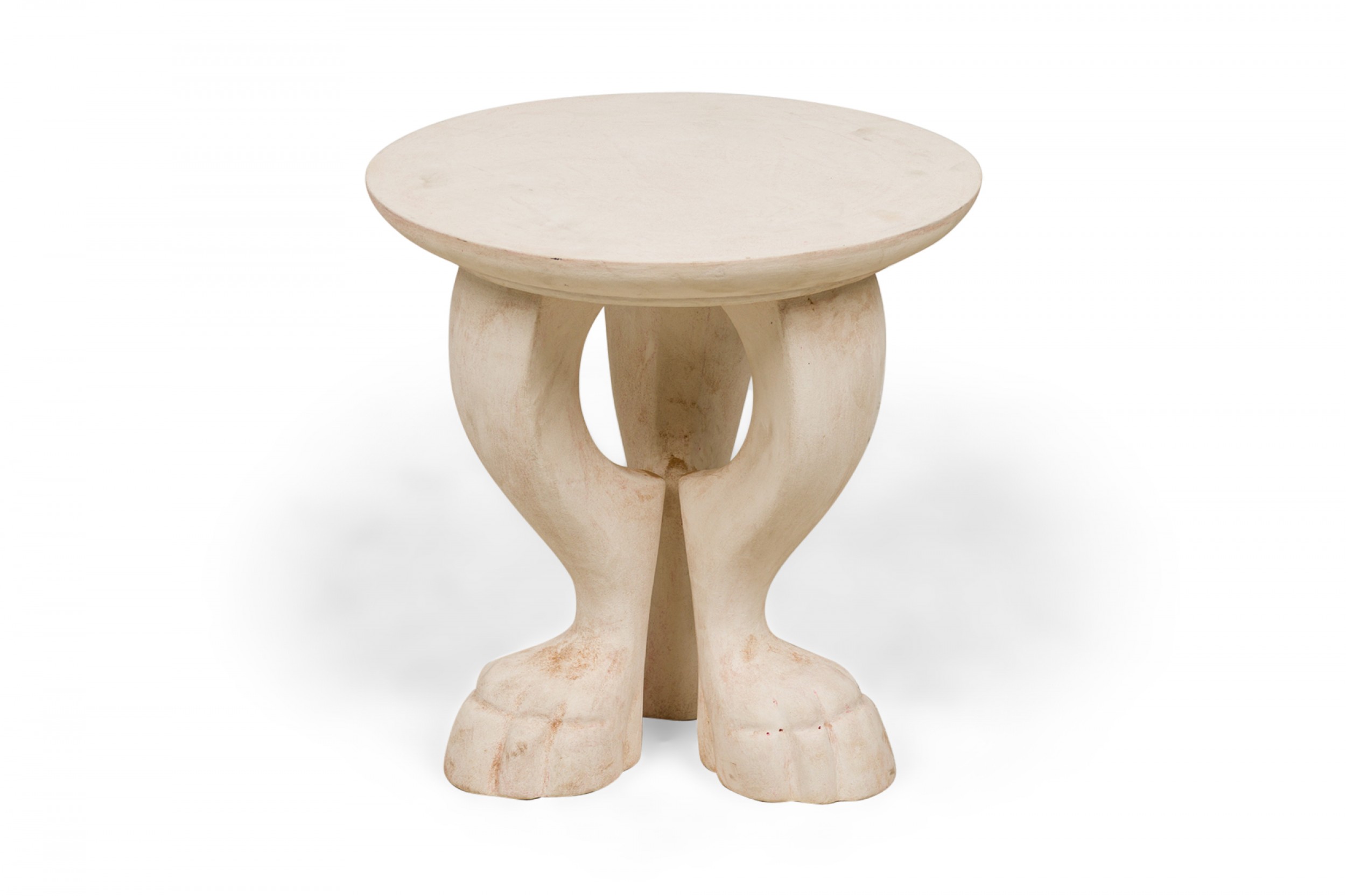 French Mid-Century 'Le Lion' white stone end / side table or stand with a circular top resting on three curved leonine legs ending in three paws. (JACQUES GARCIA FOR BAKER FURNITURE COMPANY)