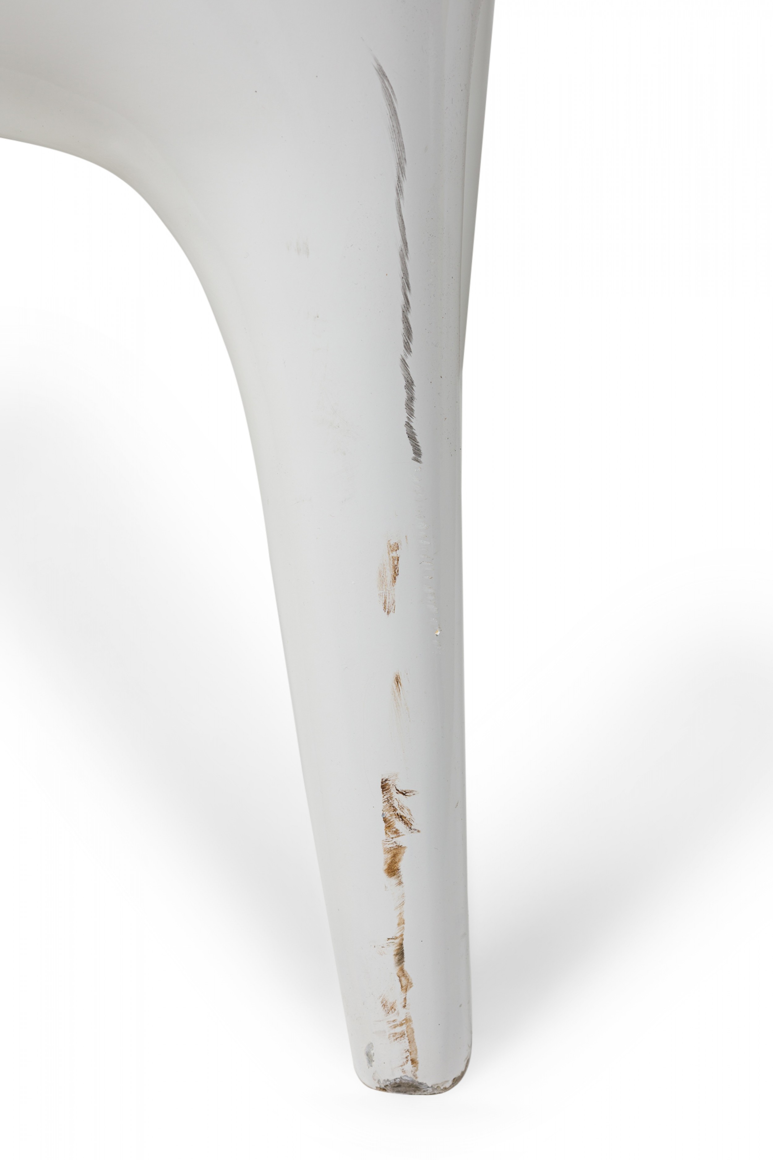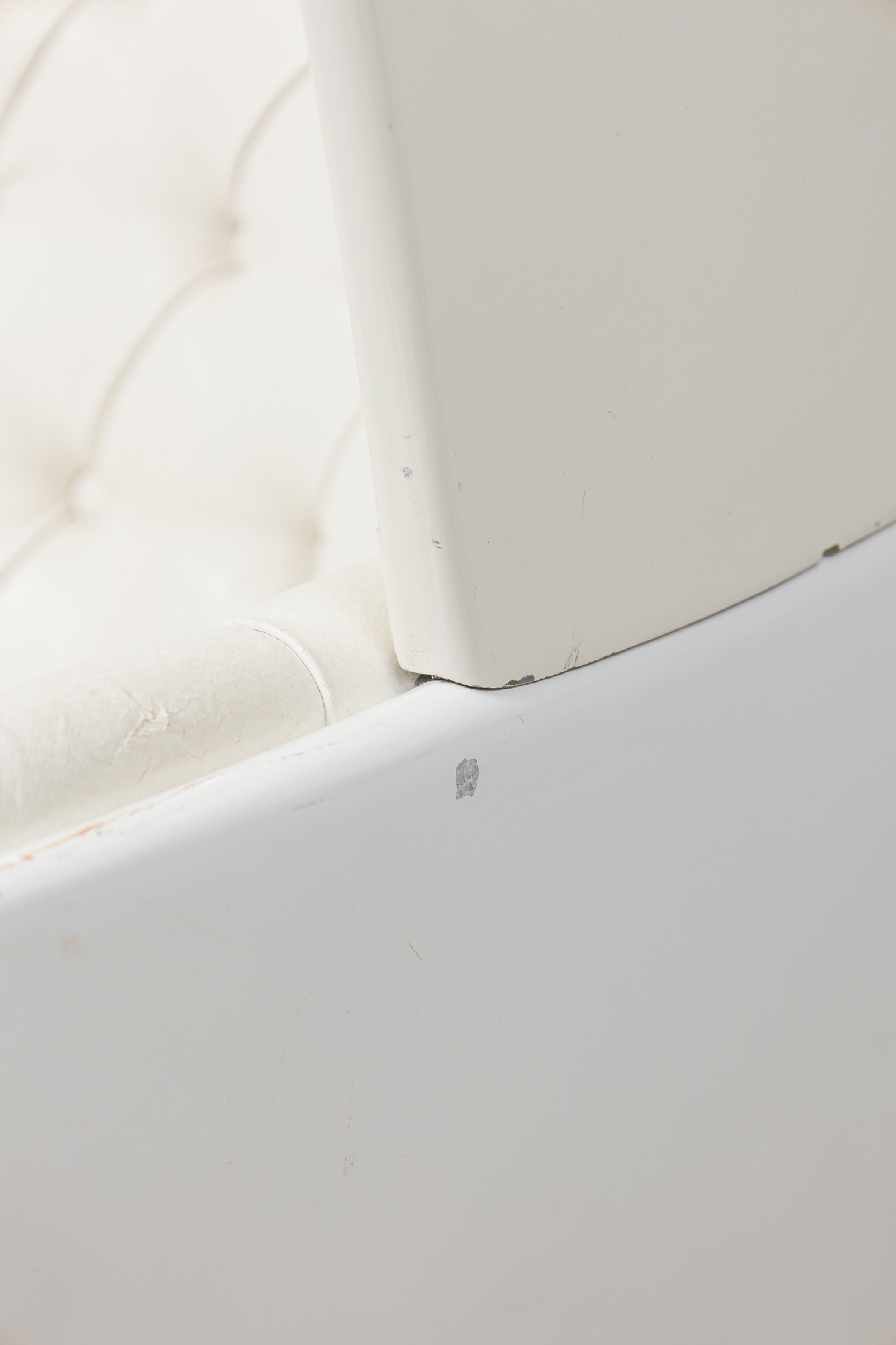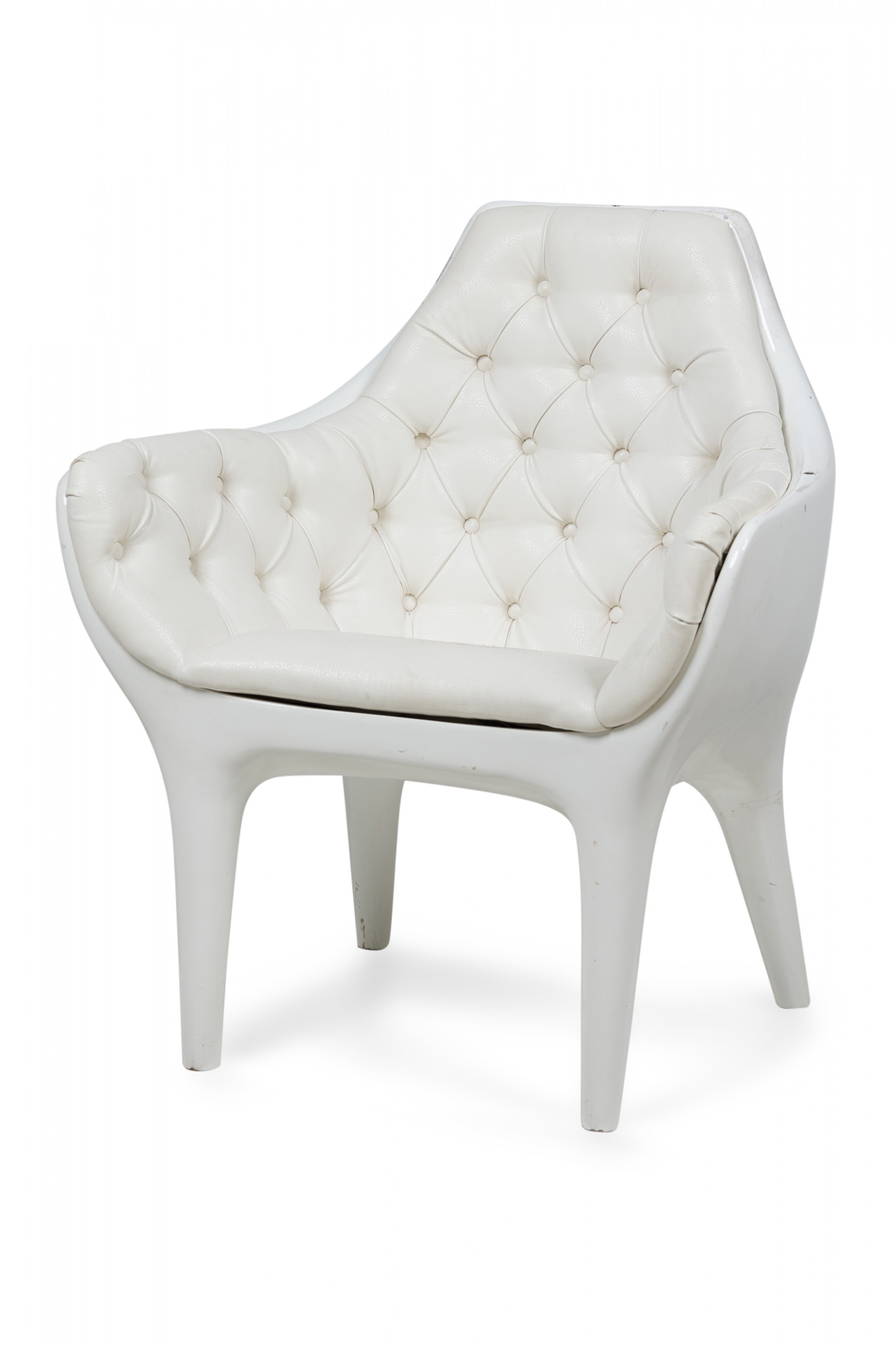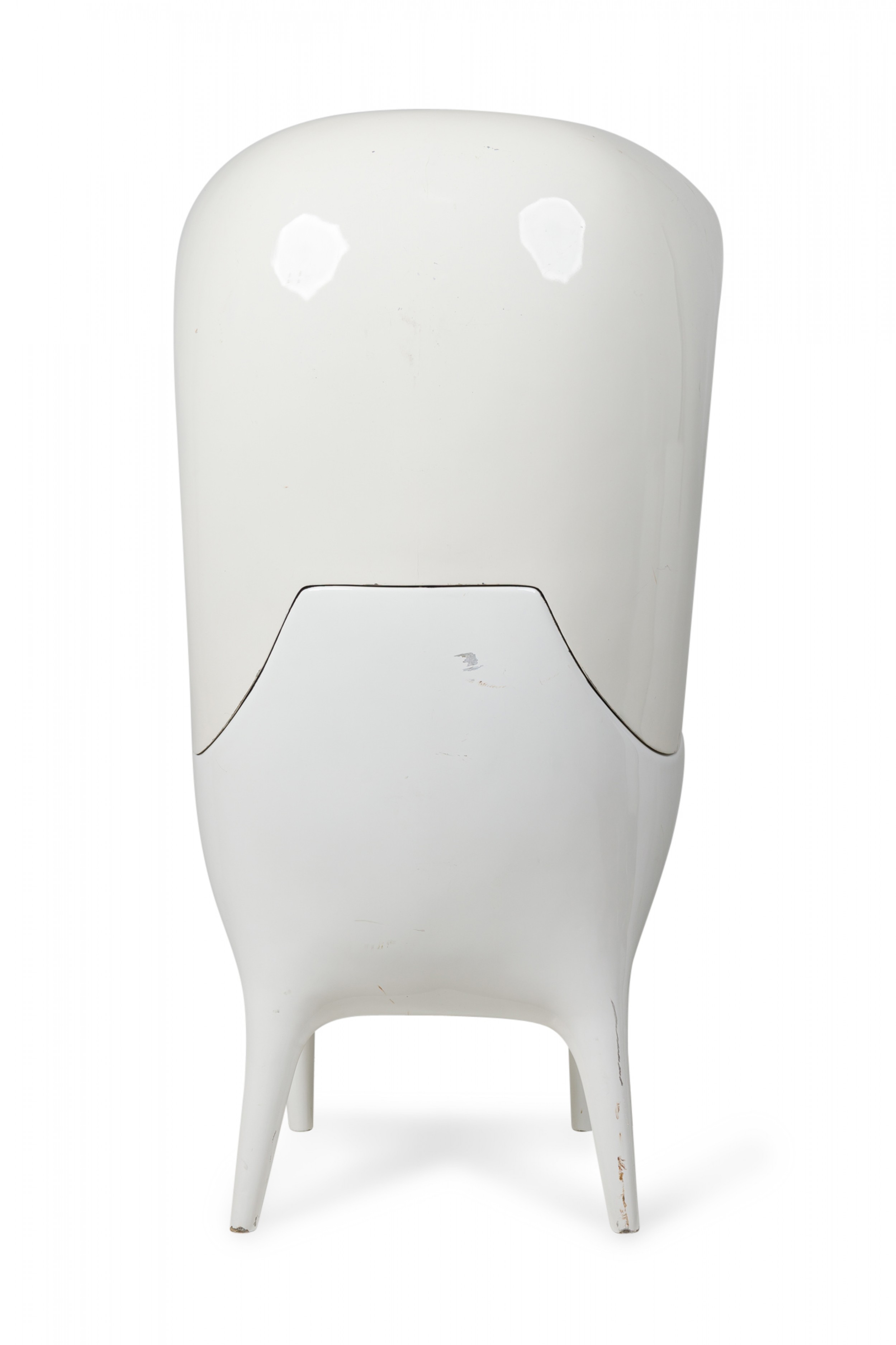 Contemporary Spanish "Showtime" hooded armchair with a removable white lacquered polyethylene cover, button tufted white leather upholstery, standing on sculptural molded feet. (JAIME HAYON)