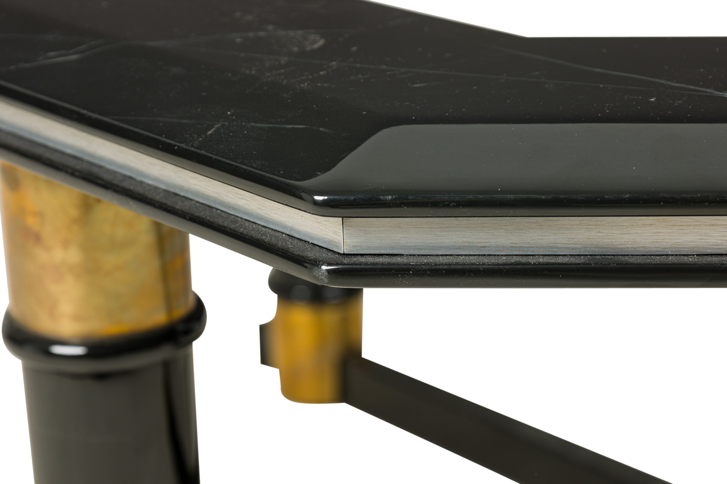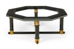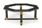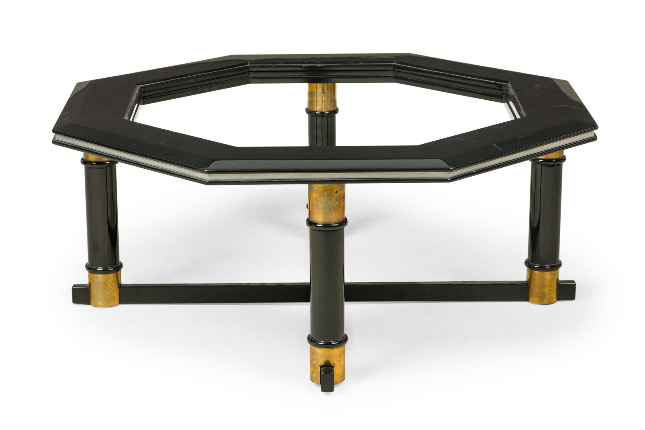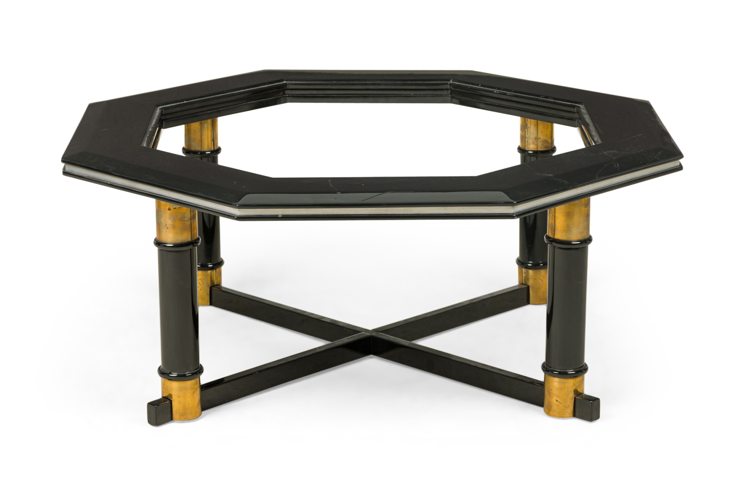 James Mont Mid-Century Americna Black Lacquer and Brass Octagonal Low Coffee Table Frame