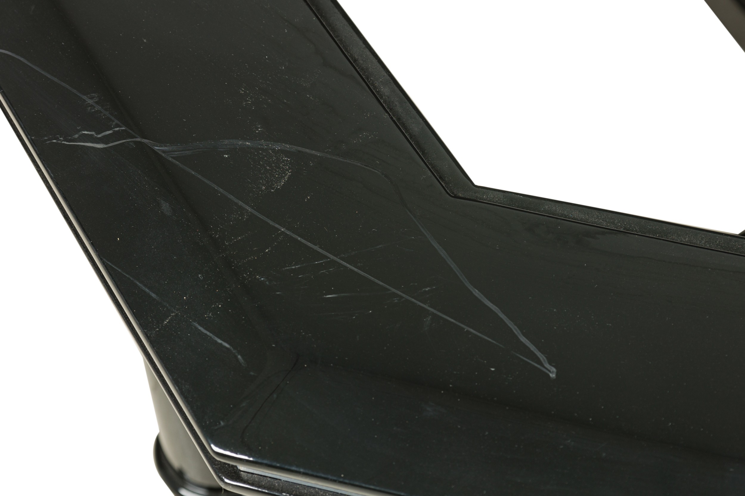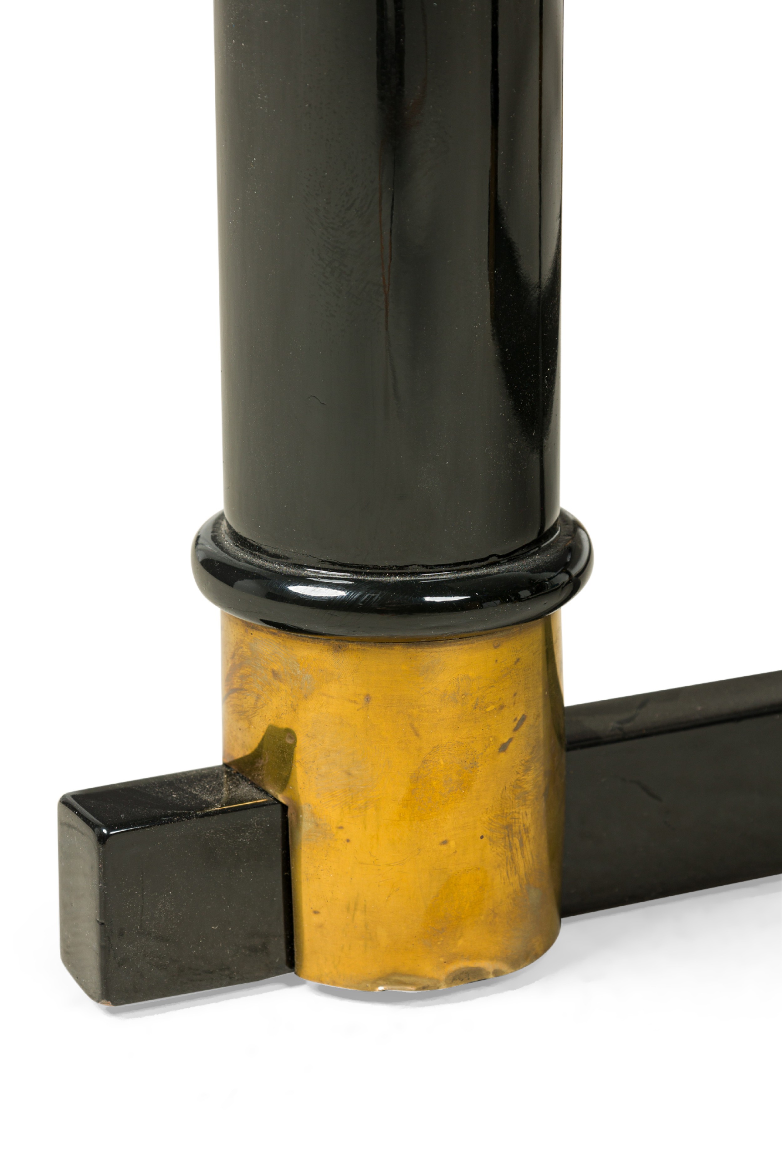Style: Mid-Century Materials & Techniques: Brass, lacquered, metal, wood Category: Tables Condition: Missing glass /marble top, frame only. Minor wear Good; Minor losses