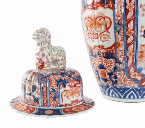 Pair of Japanese Imari Rose Porcelain Covered Vases