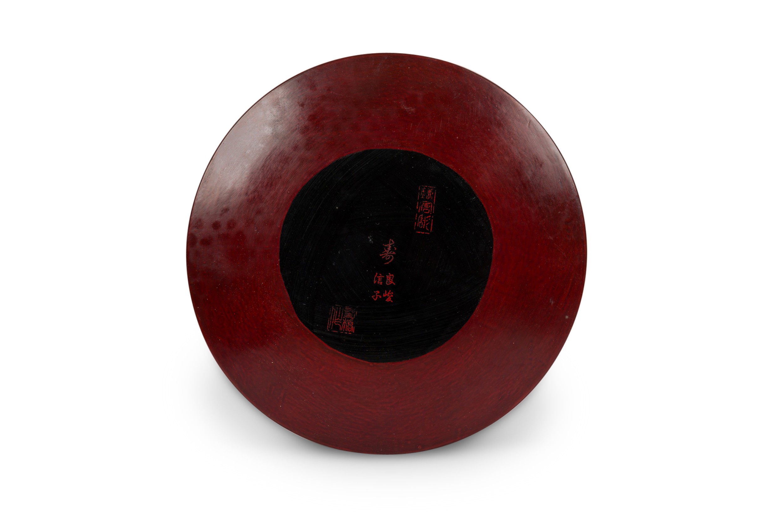 Japanese Kamakura-bor red lacquered wall plaque of a plate with two flowers