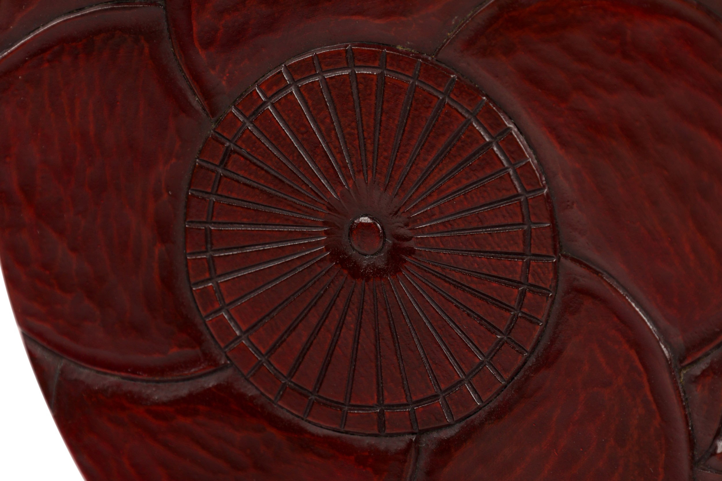Japanese Kamakura-bor red lacquered wall plaque of a plate with two flowers.