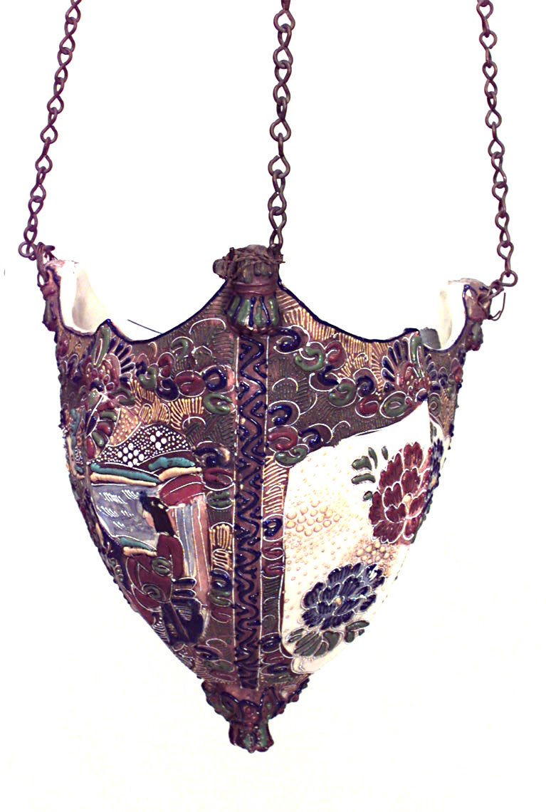 Asian Japanese style (19th Cent) Satsuma porcelain hanging fernery/cachepot with triangular shape.
