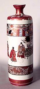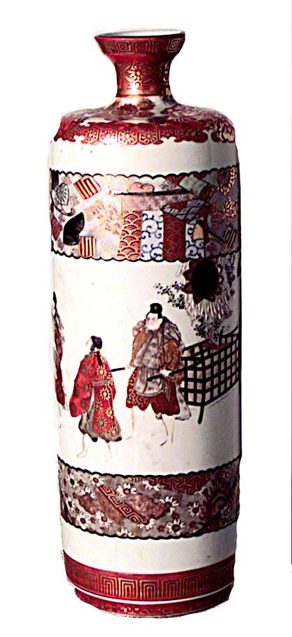 Asian Japanese style (19/20th Cent) orange and white Satsuma porcelain cylindrical shaped vase with figure..