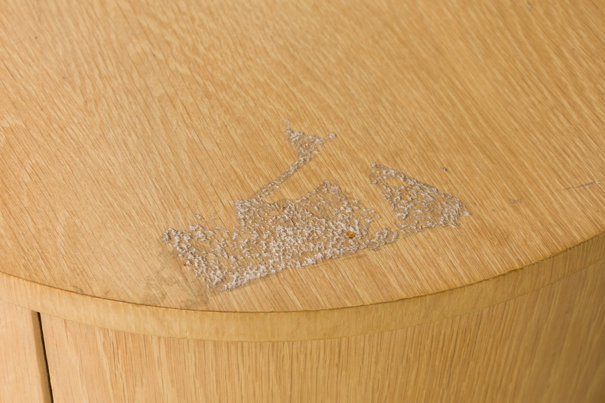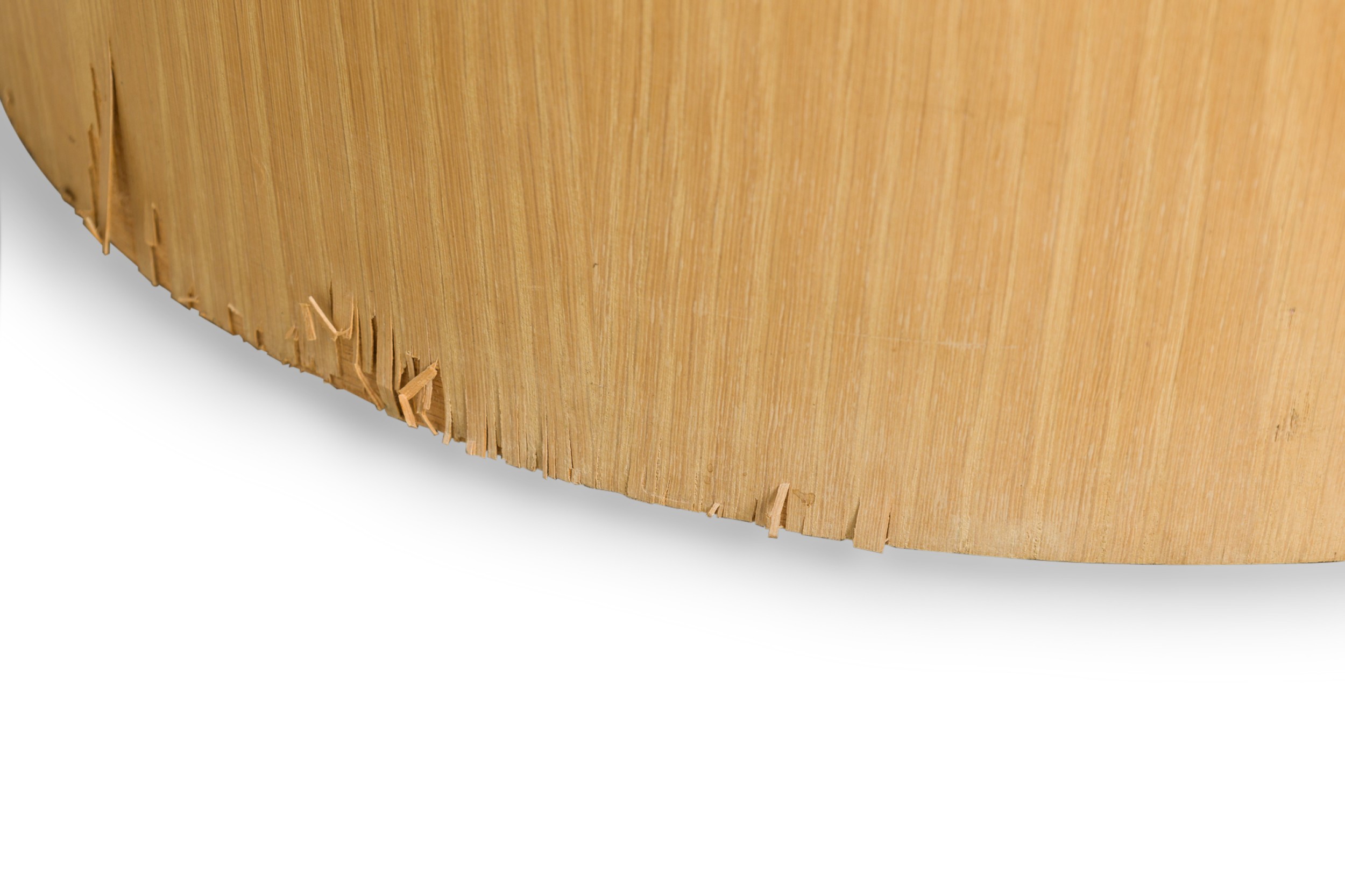 Style: Contemporary/Post-War Design Materials & Techniques: Cerused, metal, oak, veneer, wood Category: Tables Condition: Minor scuffing and losses to veneer, missing glass top, base only. Good; Minor losses
