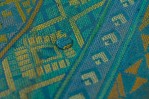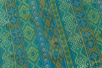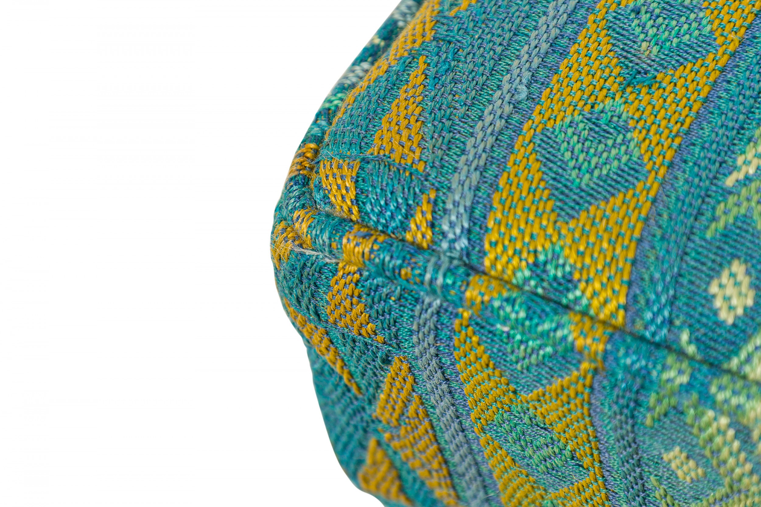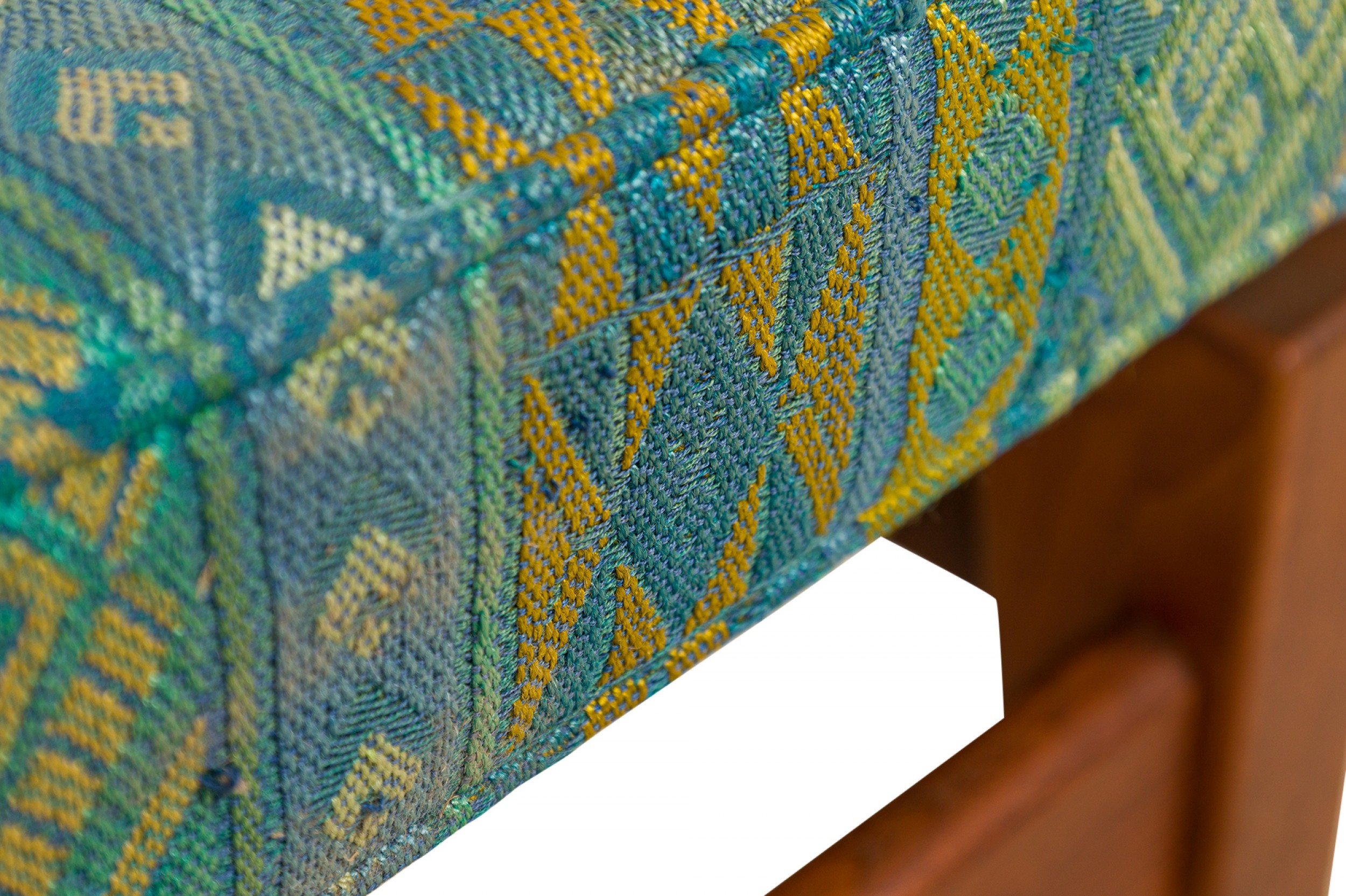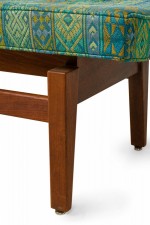 Jens Risom Danish Mid-Century Blue and Green Southwestern Pattern Upholstery and Wood Floating Bench
