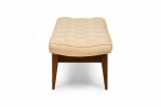 Jens Risom Danish Mid-Century Off-White Shou Patterned Upholstery and Wood Floating Bench