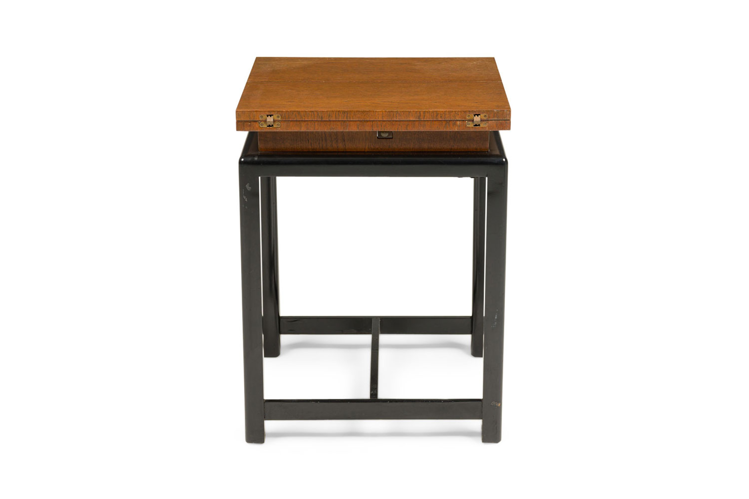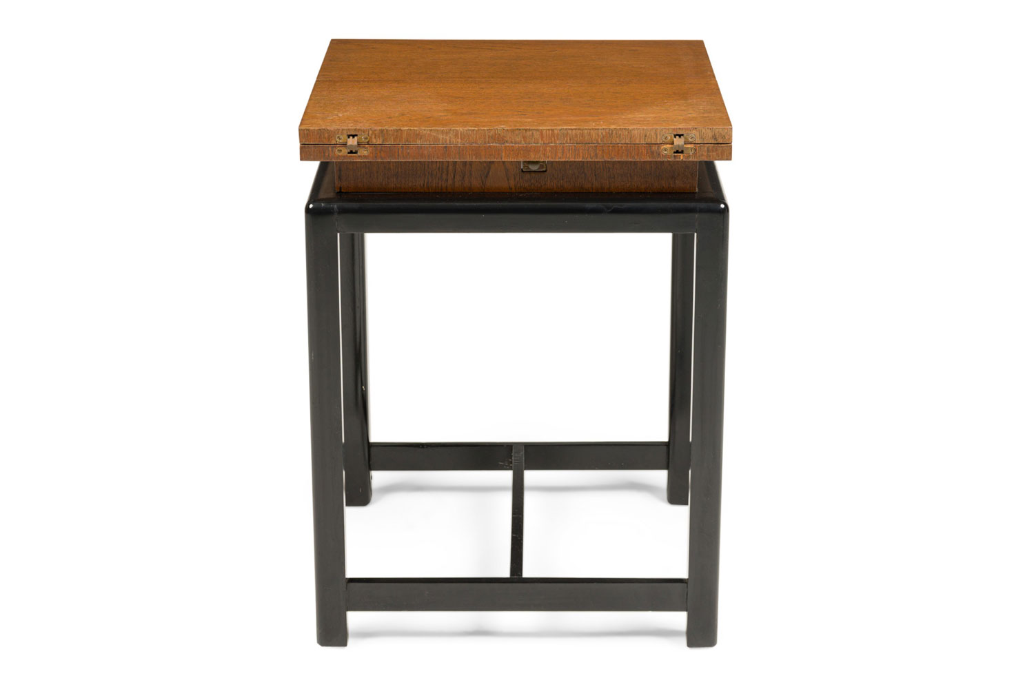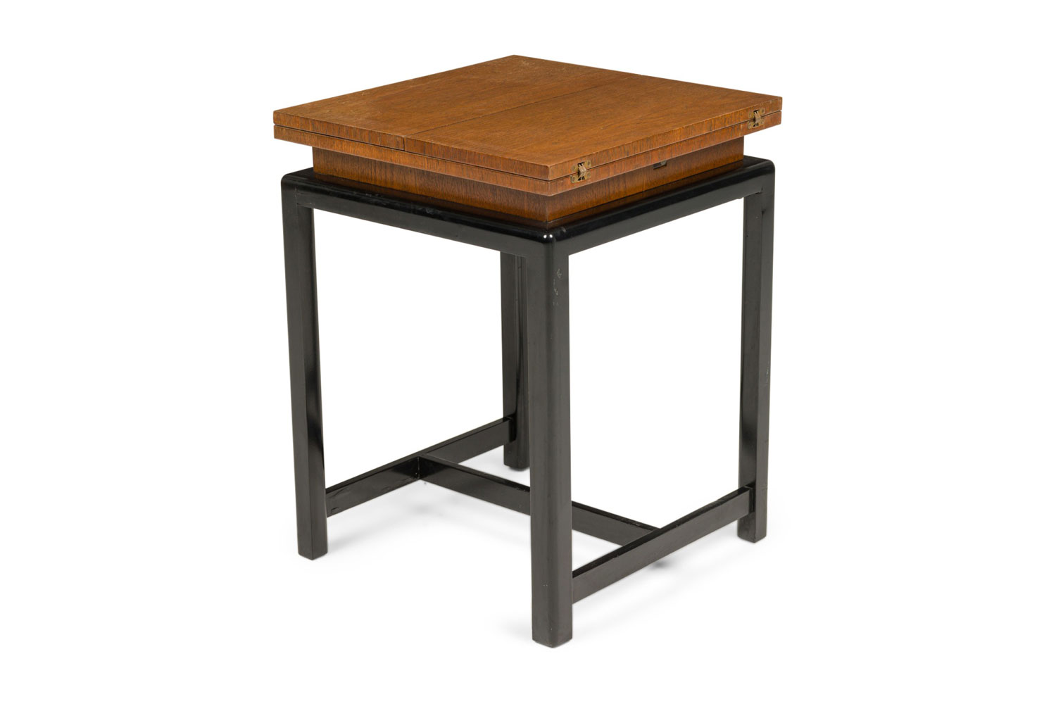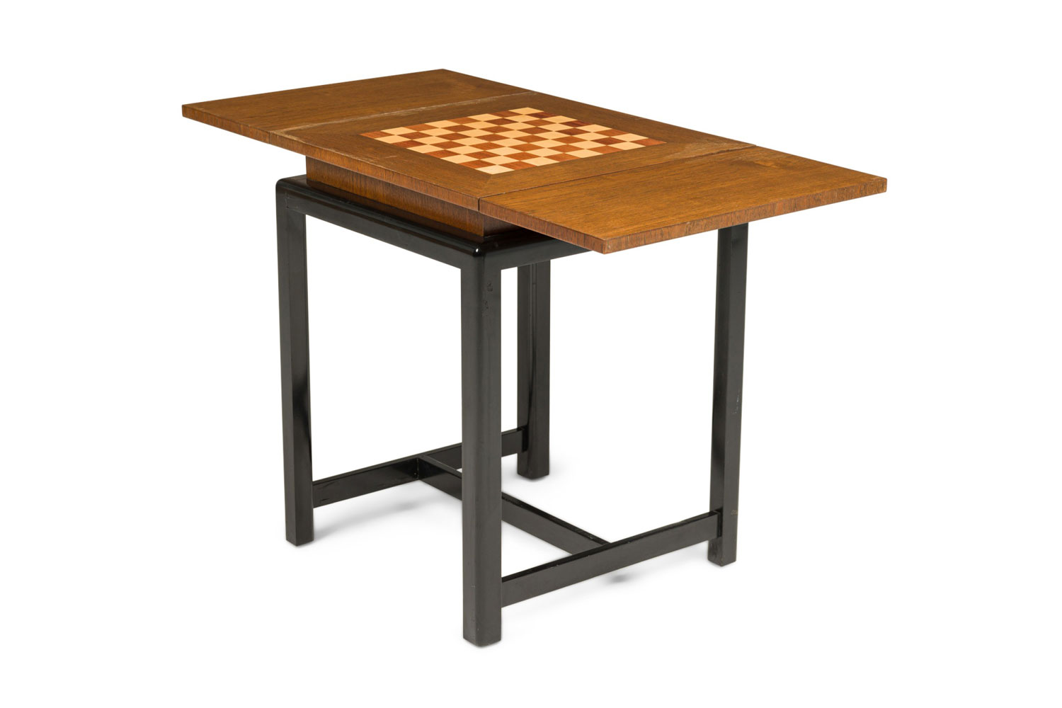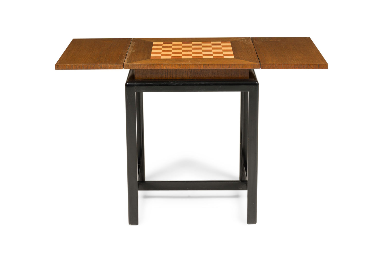 American Mid-Century "Butterfly" drop leaf Game Table with an inlaid checkerboard top section supported on an ebonize base (JOHAN TAPP)