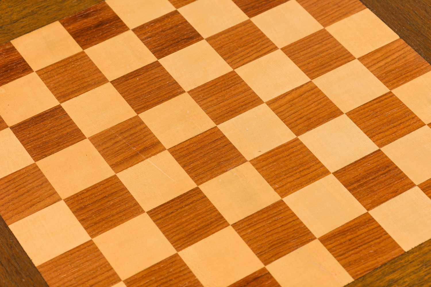Style: Mid-Century Materials & Techniques: Wood Category: Sporting/Gaming, Dining Room, Tables Condition: When folded closed the table top is 22" x 22"