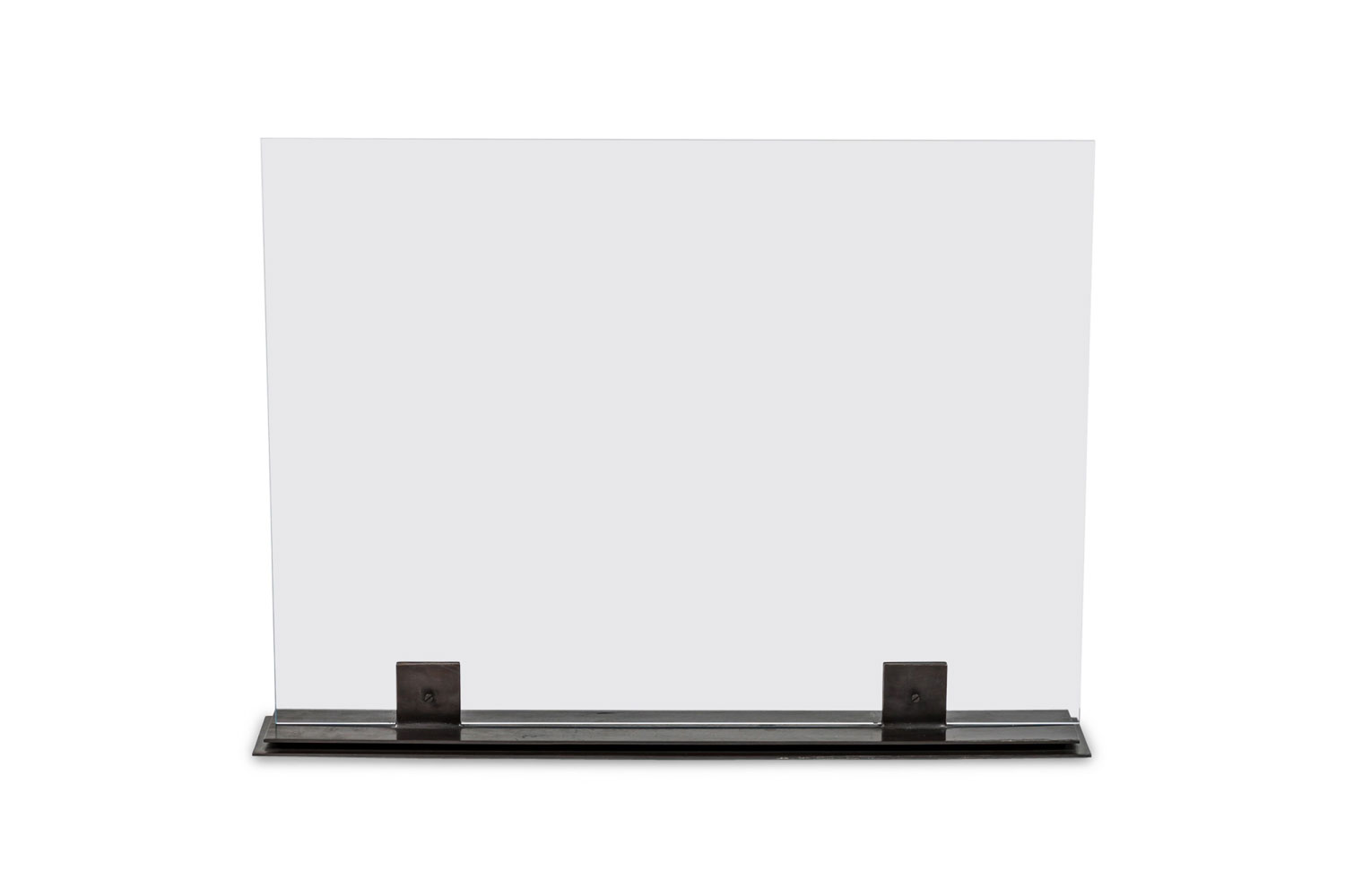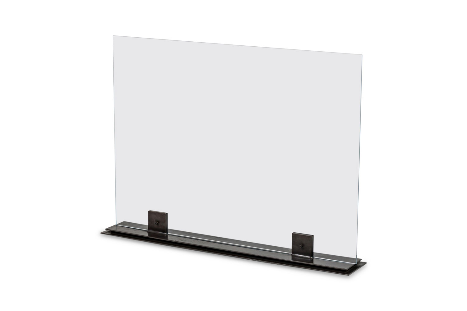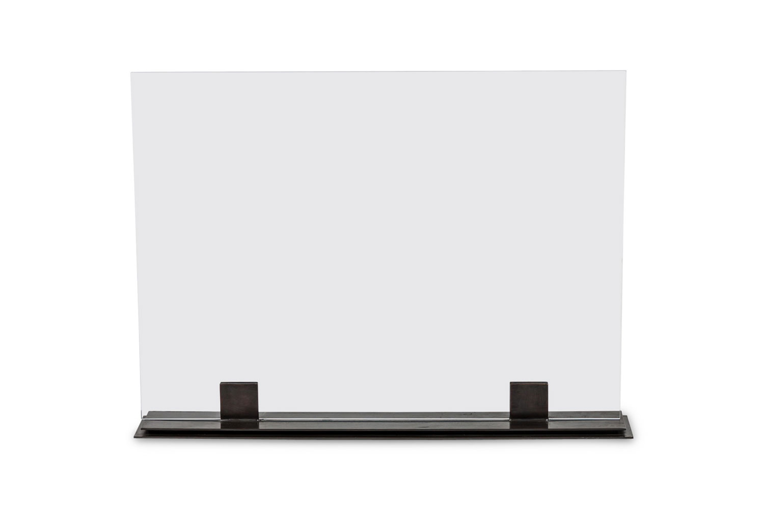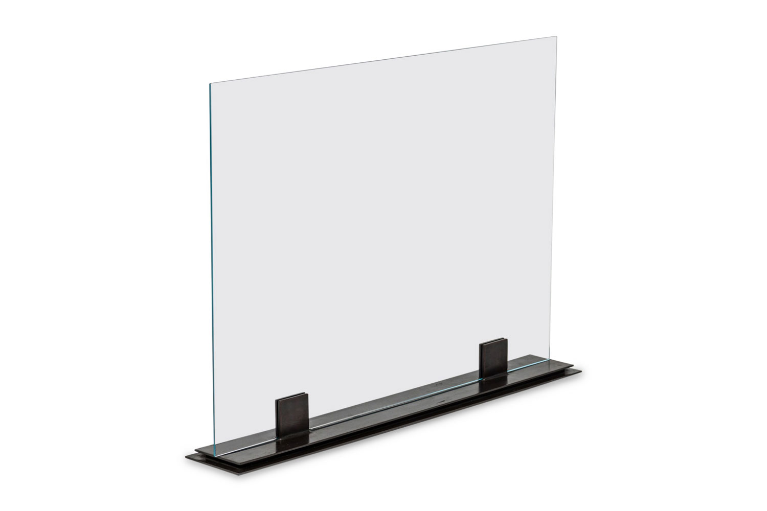 American mid-century starphire glass fire screen with bronze base (JOHN LYLE DESIGN).
